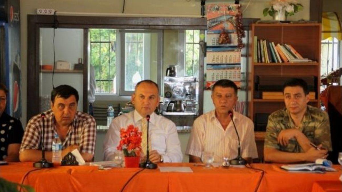 Hatay’ın Erzin ilçesi Belediye Aile Çay Bahçesi’nde sponsorluğunu Erzin Ticaret ve Sanayi Odası başkanlığının üslendiği, Erzin Kaymakamlığı İlçe İdare Kurulu Toplantısı gerçekleşti.Sabah 08:00 saatlerinde kahvaltı sonrası başlayan toplantıya tüm kamu kurum kuruluşları ve sivil toplum kuruluşları temsilcileri katıldı. Erzin ilçesinde 25 dernek bulunmasına rağmen sadece 3 dernek temsilcisinin katılması dikkat çekti.Başkanlığını Kaymakam İskender Yönden’in yaptığı toplantıda tüm kurum amirleri ve diğer kuruluş temsilcilerinden 2013 yılı içerisinde çalışmalar hakkında raporlar sunuldu. Toplantıda her yıl olduğu gibi narenciye hırsızlığı ele alındı. Bunun içinde belediye, ilçe jandarma ve ilçe emniyet müdürlüğü tarafından ortak hareket etme kararı alındı.Erzin Belediye Başkanı Kasım Şimşek, narenciye hırsızlığı konusunda birçok caydırıcı önlemler alındığı ve geçen sezon bunu en aza indirdiklerini ifade etti. Şimşek, bu sezon ise narenciye satış noktalarının belli yerlerde yapılacağını ve bununda sıkı kontrollerden geçirileceğini, hırsızlığı önleme açısından markalı ve paketli narenciye satılması konusunda bir dizi çalışmalar yapılacağını sözlerine ekledi.Erzin İlçe Kaymakamı İskender Yönden, bilgilendirme toplantılarının her ay yapılacağını ve toplantıya katılacak daire amirlerinin bundan böyle daha hazırlıklı gelmesi için uyarıda bulundu. Kaymakam Yönden, ilçe kurumları içerisinde başarılı çalışmalarından nedeniyle Erzin Halk Eğitim Merkezi Müdürü M. Ökkeş Koçak’ı tebrik etti.