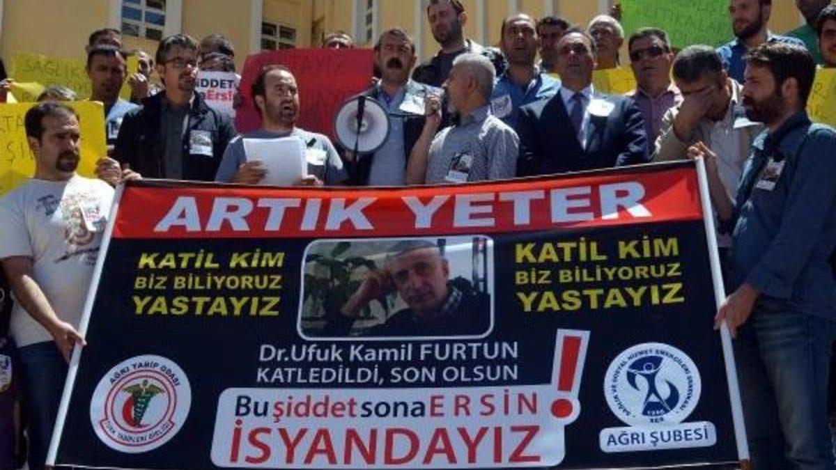 Ağrı Devlet Hastanesi bahçesinde öğle saatlerinde bir araya gelen Sağlık ve Sosyal Hizmet Emekçileri Sendikası Ağrı şubesi ile Tabipler odasına bağlı sağlık çalışanları ellerinde pankart ve dövizlerle yaşanan şiddete tepki gösterdi. Tabip Odası temsilcisi Dr. Ulaş Yılmaz yaptığı konuşmada, "Yüreğimiz acı ve öfke dolu. Meslektaşımızın görev yaptığı hastanede hunharca katledilmesini nefretle kınıyoruz. Acı ile doluyuz; yılların emeği ile yetişmiş, kendi ailesinden, eşinden, çocuklarından çaldığı vakitlerle hastalarına faydalı olmaya çalışan ve halkımızın sağlığı için gece gündüz fedakarca hizmet vermeye çabalayan çok kıymetli meslektaşlarımız için gözyaşı döküyoruz. Niyetler, hedefler, planlar bu yönde olsaydı Ersin’imiz, Melike’miz, Kamil’imiz bugün bembeyaz önlükleri ile hastane koridorlarında halkımızın sağlığı için koşturmaya devam ediyor olabilirlerdi. Sürekli olarak şiddete uğradığımız, dövüldüğümüz, vurulduğumuz hastane binalarına girmiyoruz" dedi.