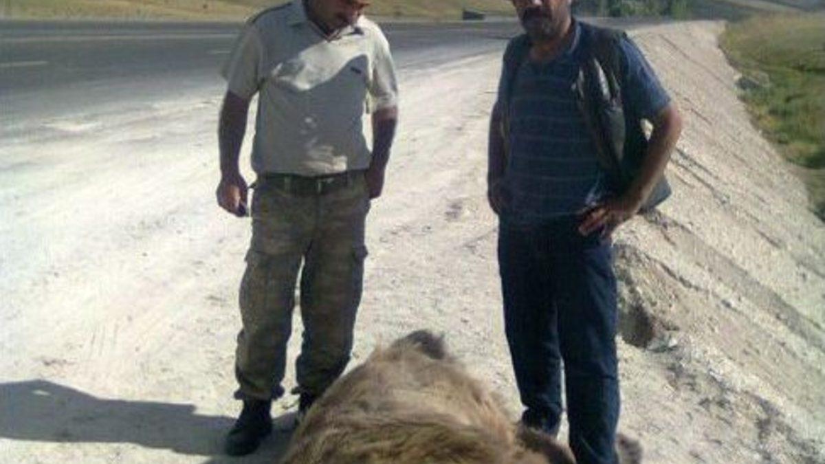 Erzurum-Tortum Karayolu üzerinde TIR’ın çaptığı ayı telef oldu.Dün sabah saatlerinde Tortum yolunun 30’ncu kilometresinde ayı leşini gören sürücüler ve köy sakinleri şaşırdı. TIR’ın çarptığı ileri sürülen ayı yol kenarına düşerek telef oldu. Bir süre yol kenarında öyle kalan ayı leşinin etrafında toplanan vatandaşlar, fotoğraf çekmeyi ihmal etmediler.Ayının leşi yaklaşık 5 saat yol kenarında kaldıktan sonra ilgili ekipler tarafından kaldırıldı.