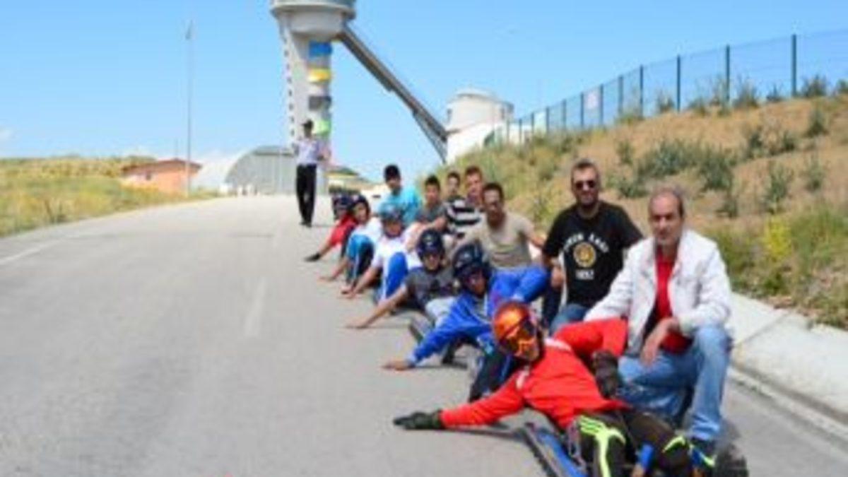 Erzurumlu kızakçılar, bunaltıcı sıcaklara rağmen, kış sezonuna hazırlanıyor. Kızakçılar, Türk Telekom Atlama Kuleleri’nin asfalt kaplı yolunda idman yapıyor.