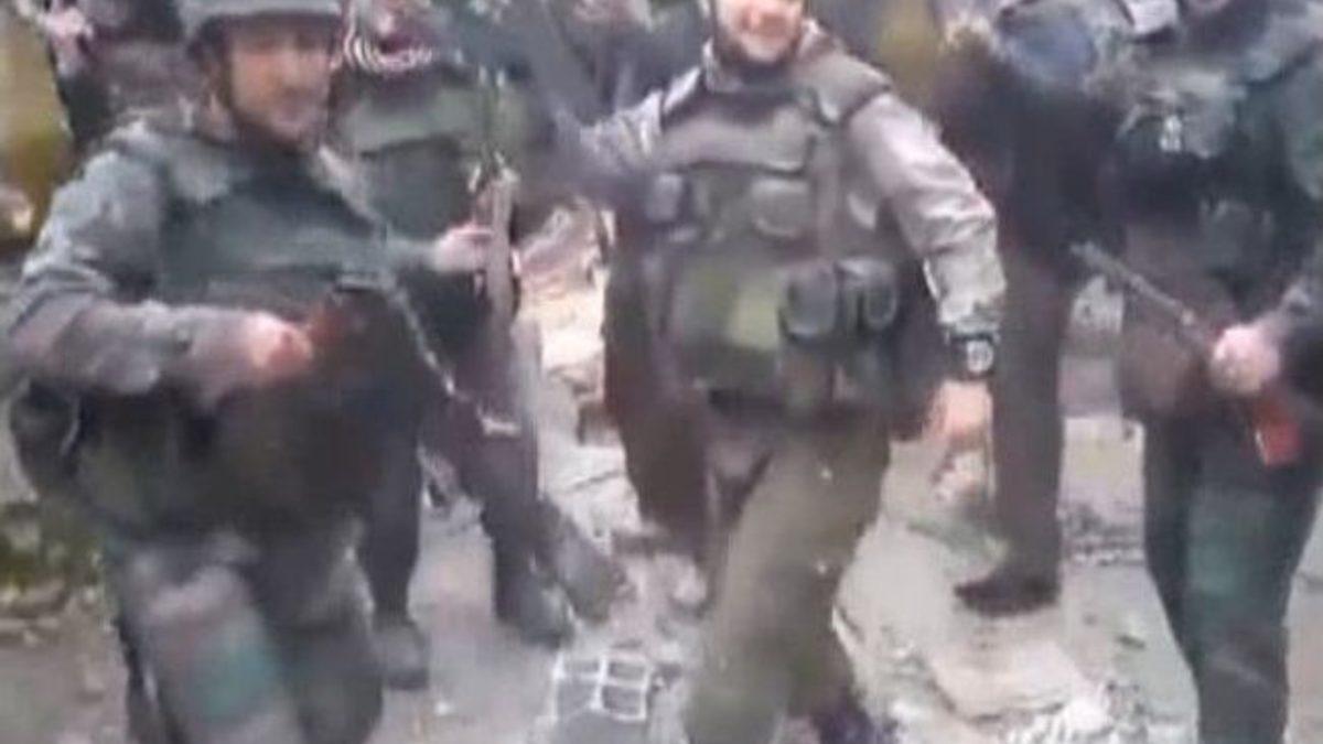 Suriye'de Beşar Esad'a bağlı birliklerden bir grup askerin operasyon sonrası yaptığı dans, amatör kameraya yansıdı.