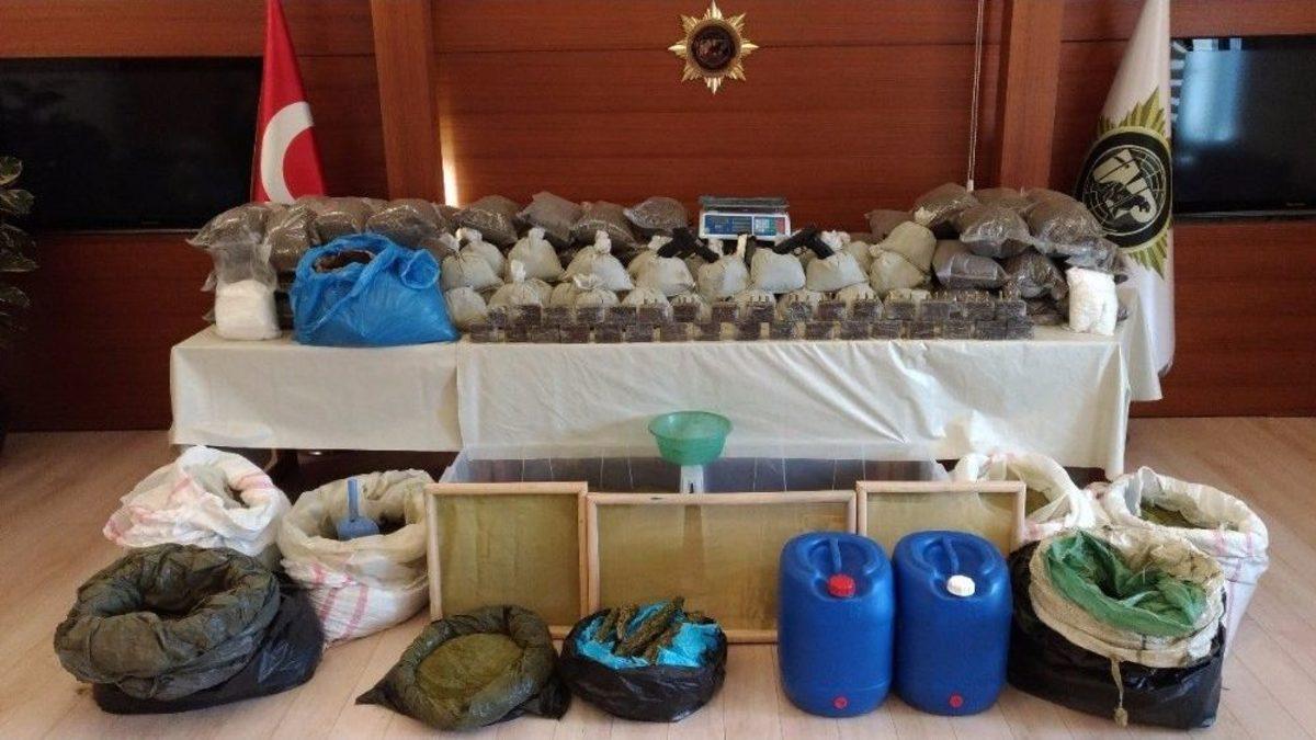 İstanbul Narkotik Şube Müdürlüğü ekipleri tarafından Esenyurt ve Büyükçekmece’de gerçekleştirilen operasyonlarda yaklaşık 300 kilo uyuşturucu maddesi ele geçirildi. Operasyonlarda 2 kişi gözaltına alınırken, uyuşturucu yapımında kullanılan malzemelere de el konuldu.İstanbul Emniyet Müdürlüğü Narkotik Şube ekipleri, Esenyurt ve Büyükçekmece’de belirlenen adreslere uyuşturucu operasyonu düzenlendi. 5 Mayıs günü adreslere eş zamanlı baskın düzenleyen polis, 236 kilo 240 gram esrar, 66 kilo 160 gram bonzai, 7 kilo 480 gram reçine esrar, 4 kilo 100 gram bonzai hammaddesi, 960 gram Hint keneviri bitki parçaları, 42 gram ecstasy, 41 kilo aseton, hassas terazi, uyuşturucu yapımında kullanılan malzemeler ve 2 adet ruhsatsız tabanca ele geçirdi.Operasyonda D.D. ve İ.D. isimli şahıslar da gözaltına alındı. Polisin uyuşturucu operasyonu, kameralara da yansıdı.