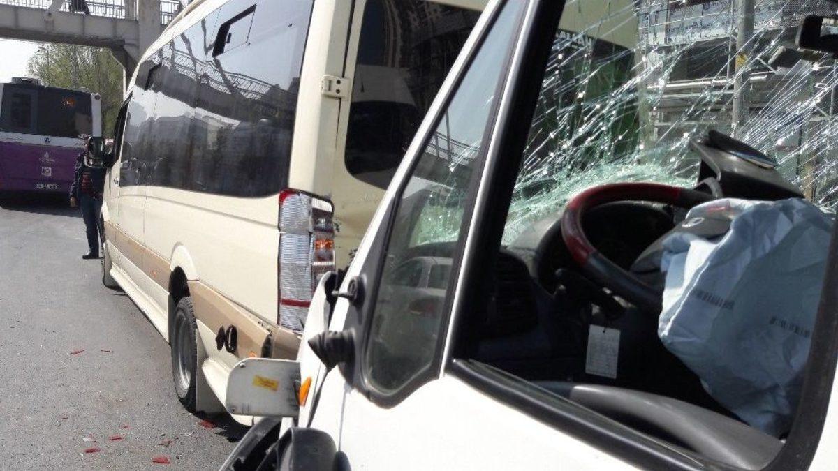 Esenyurt’ta yolcu indirip bindirmek için aniden duran minibüse okul servis aracı arkadan çarptı. Kaza’da 1’i ağır 5 kişi yaralandı.Doğan Araslı Bulvarı Avcılar istikametine seyreden 34 M 5557 plakalı minibüs Sağlık Ocağı Durağı’na geldiğinde yolcuların inmesi için iddiaya göre aniden durdu. Son anda minibüsün durduğunu fark eden 34 BB 4329 plakalı okul servis aracı ise arkadan çarptı. Kazanın etkisi ile servis aracı sürücüsü araç içinde ağır yaralandı. Olay yerine vatandaşlar tarafından sağlık ve polis ekipleri çağrıldı. Bu sırada minibüsün içinde bulunan yolculardan 4’ünün de yaralandığı öğrenildi. Sağlık ekipleri kısa sürede olay yerine gelerek yaralıları çevredeki hastanelere kaldırdı.Polis olayla ilgili incelemesine devam ederken yolda trafik bir süre durma noktasına geldi.