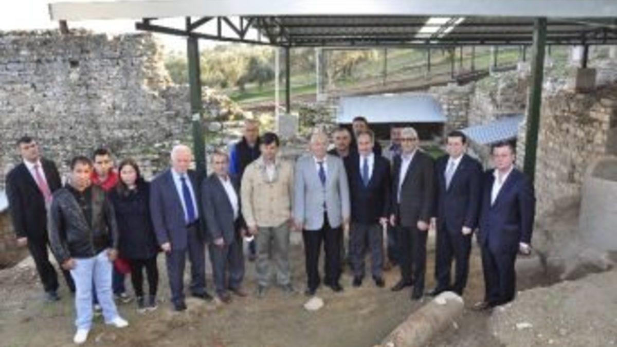 Eski Kültür ve Turizm Bakanı olan milletvekili Ertuğrul Günay, Torbalı’daki Metropolis Antik Kenti’ni ziyaret etti. Günay, kazı başkanı ve Manisa Celal Bayar Üniversitesi Öğretim Üyesi Doçent Doktor Serdar Aybek’ten kazılarla ilgili gelişmelerin bilgilerini aldı. Bakanlık görevi sırasında ören yeri ilan edilmesi için çaba sarf eden Günay yapılan çalışmaları yerinde inceledi. Metropolis’i ziyaret eden Ertuğrul Günay, “Türkiye böyle bir yer daha görmedim. Burası çok önemli bir ören yeri olacak” dedi. Günay büyük bir titizlikle incelediği gezisi Metropolis’te kendi cep telefonuyla da bol bol resim çekti. Bakan Günay’a ziyareti sırasına AK Parti İzmir İl Başkan Yardımcısı Atilla Kaya, Torbalı İlçe Başkanı Hasan Akbıyık, AK Parti Belediye Başkan Aday Adayı Adnan Yaşar Görmez, İl Genel Meclisi Üyesi Mahmut Öztaş da eşlik etti.GÜVENLİK VE ENGELLİLERİ ÖN PLANDA TUTTUEeski Bakan Günay, gelir gelmez güvenliğin nasıl sağlanacağı konusunda büyük bir hassasiyetle bilgi alırken, engellilerle ilgili olan kısımları da tek tek inceledi. İnşaatı devam eden kafeler ve hizmet birimlerini gezdi. Doçent Doktor Serdar Aybek’in rehberlik ettiği gezi sırasında en çok merak ettiği konu basında yer alan ayak izleriydi. Ayak izleri konusu anlatılırken dikkatle dinleyen Günay, eserin tamamen ne zaman gün yüzüne çıkacağı hakkında da bilgiler aldı. Kazı çalışmalarının 6 Mart’ta başladığını ve 49 kişilik bir kadroyla devam ettiğini öğrenen Kültür ve Turizm Eski Bakanı Günay, “Umuyorum ki bahara kadar çalışmalar bitmiş olur ve burası geziye açılarak turizm alanında da hizmet verir. İzmir’den dünyaya burayı böylelikle göstermiş oluruz.” dedi.GEÇ DÖNEMDE MANASTIR YAPISINI MERAK ETTİGezi sırasında Kazı Başkanı Serdar Aybek’e geç dönemde manastır yapısı olup olmadığını soran Günay, kiliselerin yapılı olduğu yerler ve Bizans duvarlarının olduğu bölümler hakkında da bilgi aldı. Ayrıca çalışma sırasında ortaya çıkan geometrik moziklerinde sağlamlığına dikkat çekerken oradan atölyeler bölgesine geçiş yaptı. Gezinin sonunda konuşma yapan Günay, “Metropolis büyük bir yer. Benim bakan olduğum dönemde kamusallaştırmıştık. Buranın özellikle ziyarete açılmasını istemiştim. Görevim bitse de çalışmaları takip etmeye devam ediyorum. İzmir’e ve başta Torbalı’ya büyük bir katkı yapacağına inanıyorum. Böylece burayı turistik bir yere de dönüştürecek. Umarım yakın zamanda çalışmalar bitecek ve burada en kısa zamanda turist arabalarını göreceğiz. Ayrıca karayollarıyla irtibata geçtik. Buraya yollar en kısa zamanda açılacak. Bu arada basından arkadaşlara da teşekkür ediyorum. En baştan beri işlerini nasıl severek yaptıklarını gösterdiler. Çalışmalarımızın sonunda da Torbalı’dan dünyaya uzanan yeni bir ören yerine sahip olacağız.” sözleriyle konuşmalarını sonlandırdı.