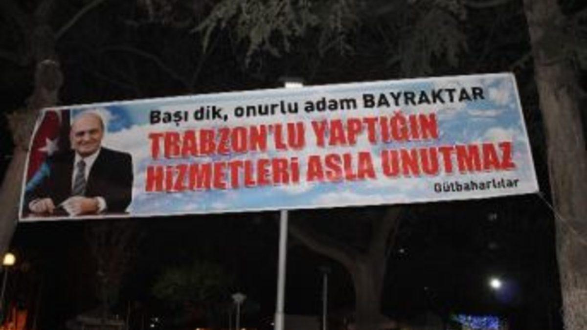 Eski Çevre ve Şehircilik Bakanı Erdoğan Bayraktar’a memleketi Trabzon’dan moral desteği.17 Aralık 2013’de İstanbul merkezli yolsuzluk ve rüşvet operasyonu kapsamında oğlunun gözaltına alınmasının ardından Bayraktar, bakanlıktan istifa ettiğini açıklamıştı.Yaşananların ardından Bakan Bayraktar’a memleketi Trabzon’da hemşehrileri Gülbaharhutun Mahallesi’nde resminin bulunduğu pankarta “Başı dik, onurlu adam Bayraktar. Trabzon’lu yaptığın hizmetleri asla unutmaz. Gülbaharlı’lar” yazısıyle destek verdi.