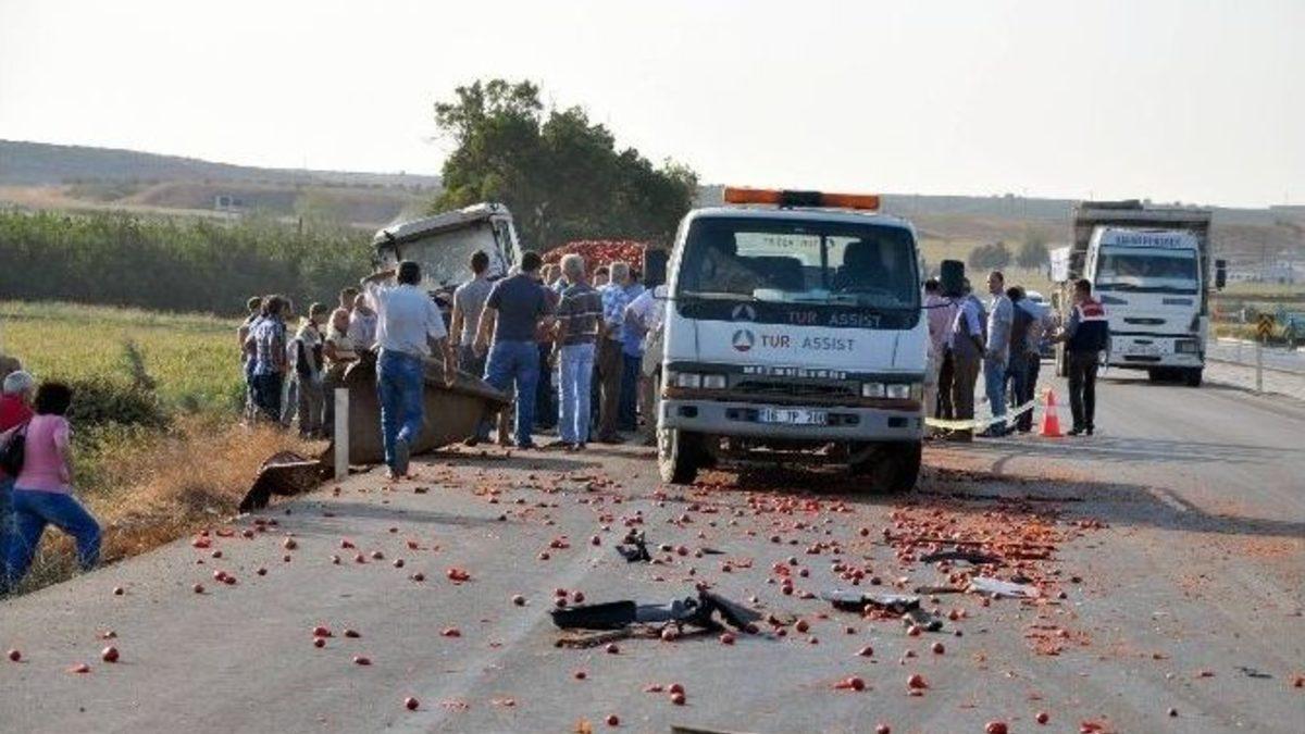 Çanakkale-Bursa yolu üzerinde TIR ile traktörün çarpışması sonucu eski Şahin Mahallesi Muhtarı Mustafa Çiçek hayatını kaybetti.Şahin mahallesinden Bursa istikametine emniyet şeridinde domates yüklü 16 TK 748 plakalı traktörüyle giden eski Şahin Mahallesi Muhtarı Mustafa Çiçek (60)’e, aynı istikamette giden İsmail Ç. (32) yönetimindeki 80 DT 301 plakalı TIR çarptı. Traktör sürücüsü Mustafa Çiçek kaza yerinde hayatını kaybetti. Kazanın şiddetiyle traktör yoldan çıkarken TIR sürücüsü olay yerini 300 metre geçtikten sonra durabildi. Kazanın şiddetiyle traktör römorktan ayrılırken domatesler yola saçıldı. Kazada yerinden sökülerek dorseye yapışan kapı gözler önüne serdi.TIR sürücüsü gözaltına alınırken, jandarma olayla ilgili soruşturma başlattı.