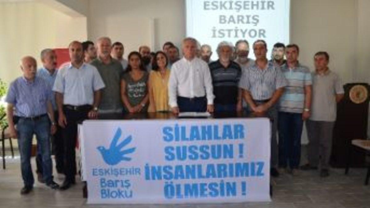 Eskişehir’de, birçok sendika ve dernekten oluşan bir Barış Bloku kuruldu.Eskişehir Barış Bloku Bileşenleri; DİSK-KESK-Eskişehir Tabip Odası-Eskişehir TMMOB İKK-Türkiye Yazarlar Sendikası Eskişehir İl Tem., Halk Evleri, Eğit-Der, Pir Sultan Abdal Kültür Derneği, Yaşam Bellek Özgürlük Derneği, ÖVDER-Eskişehir Demokratik Kadın Platformu, EMEP, EHP, HDP, Öğrenci Kolektifleri, Kaldıraç Dergisi’nden oluştu.Eskişehir Barış Bloku adına konuşan Eskişehir Tabip Odası Başkanı Dr. Bülent Nazım Yılmaz, Türkiye İnsan Hakları Vakfı açıklamalarına göre Suruç Katliamı dışında 16 polis, 2 korucu, 35 asker, 32 örgüt üyesi ve 10 sivilin yaşamını yitirdiğini belirtti. Dr. Yılmaz, açıklamasının bir bölümünde “Yaşamını yitirenler arasında Eskişehir Çifteler ilçesinde Uzman Çavuş Muhammet Tufan da bulunmaktadır. Bu acı tablonun sorumlusu kendi iktidarları ve saltanatları için halka savaş politikalarını dayatanlardır. Biz Eskişehir Barış Bloku oluşturan sendikalar, meslek örgütleri, siyasal partiler, akademisyenler olarak topluma dayatılmak istenen savaş politikalarını reddediyor, barış ikliminin hâkim kılınmasını istiyoruz” dedi.Savaş naraları kimden gelirse gelsin, savaş isteyenlere, savaşı kışkırtanlara, savaşa övgü düzenlere karşı barışı savunmaya ve barış dilini hâkim kılmaya kararlı olduklarını belirten Yılmaz, ülkede toplumsal barışı yok edenlere, komşu ülkelerde yanan ateşi körükleyerek ülke topraklarına taşıyanlara karşı barış talebinde ısrarcı olduklarını bir kez daha dile getirdi. Eskişehir Barış Bloku olarak silahların bir an önce susmasını, çatışmasızlık ortamının sağlanmasını talep ediyoruz. Eskişehir Barış Bloku olarak bu önlenebilir soruna sessiz kalmanın, demokratik çözüm yollarını kapatmanın, savaş politikalarını sürdürmenin bir insanlık suçu olduğunu, barış için her türlü demokratik mücadele yöntemini kullanacağımızı kamuoyuyla paylaşırız" diye belirtti.
