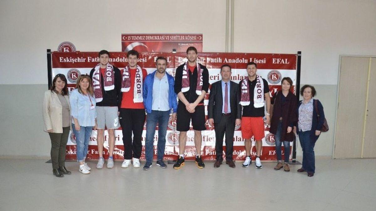 Eskişehir Basket oyuncuları Kravtsov, Baron, Berkay ve Mehmet Fırat, Fatih Anadolu Lisesi’nde düzenlenen panele katıldı.Soru-cevap şeklinde ilerleyen panelde bir hayli eğlenceli dakikalar yaşandı. Okul Müdürü Halil Turhan yaptığı konuşmada, panele katılanlara teşekkür ederken, bundan sonra oynanacak maçlarda da başarılar diledi. Soru-cevap şeklinde ilerleyen panelde ilk olarak bir öğrenci basketbolcuların fiziklerini nasıl geliştirdiklerini ve boylarını nasıl uzattıklarını sordu. Takım Menajeri Özgün Önver bu soruya, “Her biri en az 13-14 yaşından beri basketbol oynayan, altyapısını almış oyuncular oldukları için o zamandan bu yana hem düzenli besleniyorlar hem de basketbol gerçekten boyu uzatıyor. Basketbol oynadıkça boyunuzun uzama şansı daha da büyüyor” dedi."Türkiye’de basketbolun daha büyüyeceğine düşünüyorum"Bir öğrencinin ‘Diğer liglerle Türkiye Basketbol Ligi’ni kıyaslayınca aradaki farklar nelerdir?’ sorusu üzerine Billy Baron, “Amerika’daki basketbol Türkiye’deki basketboldan daha popüler bence. Türkiye’de basketbol çok hızlı büyüyor. Taraftarlar maçlara gelmeye devam ettikçe Türkiye’de basketbolun çok daha büyüyeceğini düşünüyorum. Basketbol burada daha da popüler olacak” ifadelerini kullandı.Ardından Siyah Kırmızılı basketbolcular öğrencilere 4 tane soru sordu. Doğru cevap veren 4 öğrenci Eskişehir Basket forması kazanırken panelin ardından basketbolcular bu formaları imzaladı. Panel toplu fotoğraf çekiminin ardından son buldu.
