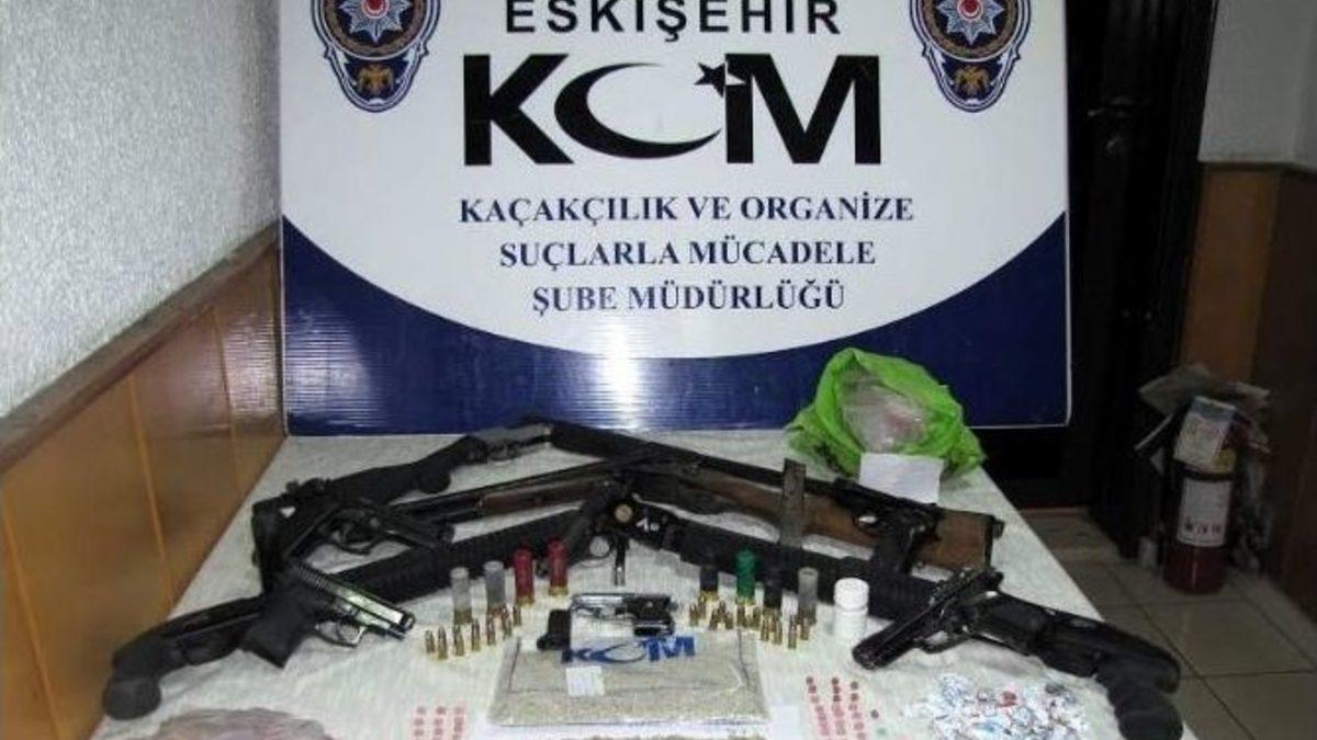 Eskişehir İl Emniyet Müdürlüğü’ne bağlı Kaçakçılık ve Organize Suçlarla Mücadele (KOM) Şubesi ekiplerinin sabah saatlerinde daha önce belirlenmiş bazı adreslere yaptığı baskının ayrıntıları açıklandı.Konuyla ilgili yapılan açıklamada, uyuşturucu satıcılığının yoğun olduğu mahallelere yönelik iki aydır devam eden projeli çalışmaları narkotik polisi operasyona çevirdiği belirtildi. Toplam 150 personel ve 35 ekiple erken saatlerde 14 ayrı adrese eş zamanlı operasyon düzenlendiği belirtilen açıklamada, “İki aydır yapılan delillendirmelerde 107 satış anı tespit edildi. Kimlerin uyuşturucuyu getirdiği, nakledildiği, hangi evlerde satıldığı polis tarafından tek tek uzun soluklu ve detaylı çalışmayla tespit edildi. Bu tespitler doğrultusunda uyuşturucu satan yerler ve şahıslara yönelik erken saatlerde gerçekleşen operasyon ile birlikte dosya kapsamında toplam; 335 adet ecstasy hap, 118,89 gram bonzai maddesi, 60 adet satışa hazır halde paketlenmiş uyuşturucu, bin 800 TL uyuşturucu madde satışından ele geçtiği değerlendirilen para, 1 adet 7,65 mm çapında Baretta tabanca, 5 adet kurusıkı tabanca ve 2 adet av tüfeği ele geçirildi. Toplumumuzu, özellikle de gençliği hedef alan zehir tacirlerine karşı güvenlik kuvvetlerimizce yapılan çalışmalar azimle ve kararlılıkla devam edecektir” denildi.