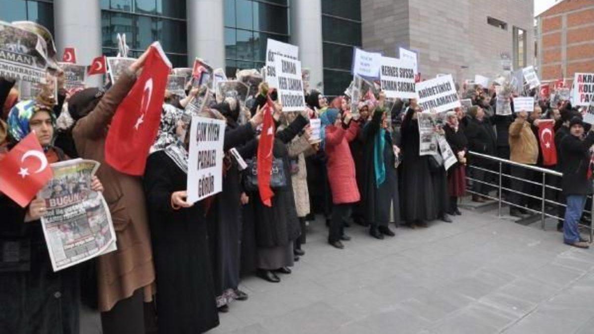 Kemal ATLAN- Hakan TÜRKTAN/ ESKİŞEHİR, Aralarında dün Eskişehir'de gözaltına alınarak İstanbul'a götürülen STV'de yayınlanan 'Sungurlar' dizisinin yapımcısı Salih Asan'ın eşi Şengül Asan'ın da bulunduğu kalabalık, öğle saatlerinde Adliye Sarayı'nın önünde toplandı. Sık sık 'Diziden korkma, Allah'tan kork', 'Özgür basın susturulamaz', 'Alnımız ak, başımız dik' ve 'Asla boyun eğmeyeceğiz' ve 'Susma sustukça sıra gelecek' şeklinde slogan atan grupta yeralan bazı kadınlar Kuran okudu.