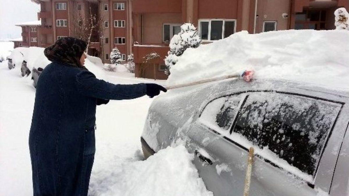 Eskişehir’de yoğun kar yağışı nedeniyle, özellikle kentin ara sokaklarına park edilen araçlar kar altında kaldı.Kent merkezinin yanı sıra yüksek kesimlerde daha da etkili olan kar, yaklaşık yarım metre yüksekliğe ulaştı. Bazı araçların üzeri tamamen karla kaplanırken, cadde ve ara sokaklardan geçmek isteyen araçlar güçlük çekti. Kar nedeniyle görünmez hale gelen araçlarını temizlemek için mücadele veren vatandaşlar, yağışın devam etmesiyle araçlarını sık sık temizlemek zorunda kaldılar. Araçların tek şeritli olarak seyretmesi, kent içi trafikte özel araç kullanımını da ciddi oranda azalttı. Park halindeki araçlarını bulunduğu yerden çıkaramayan vatandaşlar, toplu taşımayı tercih etti.