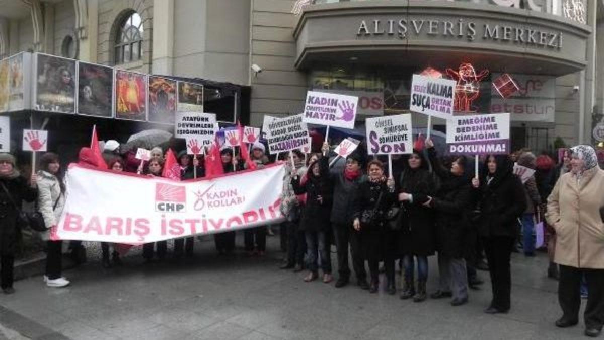Kadınlar Espark Alışveriş Merkezi önünde halay çekip oynadı. Sanatçı Ali Kocatepe yaptığı konuşmada şunları söyledi: