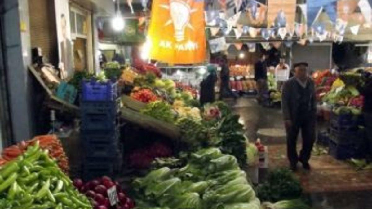 Malatya’da sebze-meyve pazarı esnafları, Başbakan Recep Tayyip Erdoğan’a destek için pazarı AK Parti bayrakları ve...