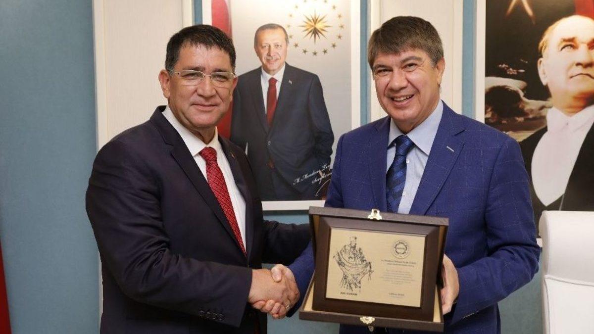 21. Ahilik Kültür Haftası kapsamında AESOB Başkanı Adlıhan Dere, Antalya Büyükşehir Belediye Başkanı Menderes Türel’e esnafa verdiği desteklerden ötürü teşekkür plaketi verdi.21. Ahilik Kültür Haftası Antalya’da çeşitli etkinliklerle kutlanıyor. AESOB Başkanı Adlıhan Dere ve yönetim kurulu üyeleri, Büyükşehir Belediye Başkanı Menderes Türel’i ziyaret etti. Esnafın Ahilik Haftası’nı kutlayan Başkan Türel, Ahilik kültürü ve ahlakının esnafa çok iyi anlatılması gerektiğini söyledi. Büyükşehir Belediye Başkanı Menderes Türel’in sözde değil özde esnaf dostu olduğuna dikkat çeken AESOB Başkanı Adlıhan Dere de, Demirciler Çarşısı içerisindeki Soba Müzesi’ni kendilerine devir ettiğini hatırlattı.Esnaf dostu başkanDere, “Bize devredilmeden önce Soba Müzesi’ni ayda 8 kişi ziyaret etmezken, 8 çalışanı vardı. Başkanımız, Soba Müzesi’ni, şu anda kullandığımız Ahi Evran Müzesi, esnaf irtibat bürosunu ve 6 dükkanı bize bedelsiz devretti. Şimdi de Ahi Evran’ın arkasındaki sokağa sahaflar çarşısı, antikacı çarşısı, ayakkabı imalatı ve tamiratı yapan esnafı getirerek orada güzel bir konsept oluşturuyor. Doğu Garajı Projesi, Nekropol Çarşısı Ali Çetinkaya ve Şarampol Cadde düzenlemeleri, Balbey Projesi ile kent merkezi cazibe alanı haline gelecek. Bundan en çok esnaf yararlanacak. Kendisi de 2014 te aday olduğunda ‘Bu turist bu çarşıya gelecek bu dükkana girecek’ dedi ve yapmış olduğu çalışmalarla bunu ispatladı. Sayın Büyükşehir Belediye Başkanıma, yönetimim ve tüm esnaf sanatkarlarımız adına teşekkür ediyorum.”Adlıhan Dere, Başkan Türel’e esnafa desteklerinden ve hizmetlerinden dolayı teşekkür plaketi takdim etti.