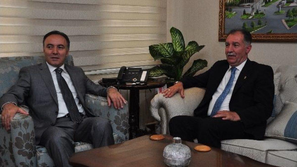 Antalya’dan Erzurum’a atanan Vali Dr. Ahmet Altıparmak’ın bugünkü ziyaretçileri Erzurum Esnaf ve Sanatkârlar Odaları Birliği Başkanı Rasim Fırat ve yönetim kurulu üyeleri oldu. Vali Altıparmak, kendisine ‘hayırlı olsun’ diyen Başkan Fırat ve yönetim kurulu üyeleriyle bir süre görüştü. Sohbet sırasında Başkan Rasim Fırat birlik ve odaların çalışmaları hakkında Vali Altıparmak’a bilgi verdi.