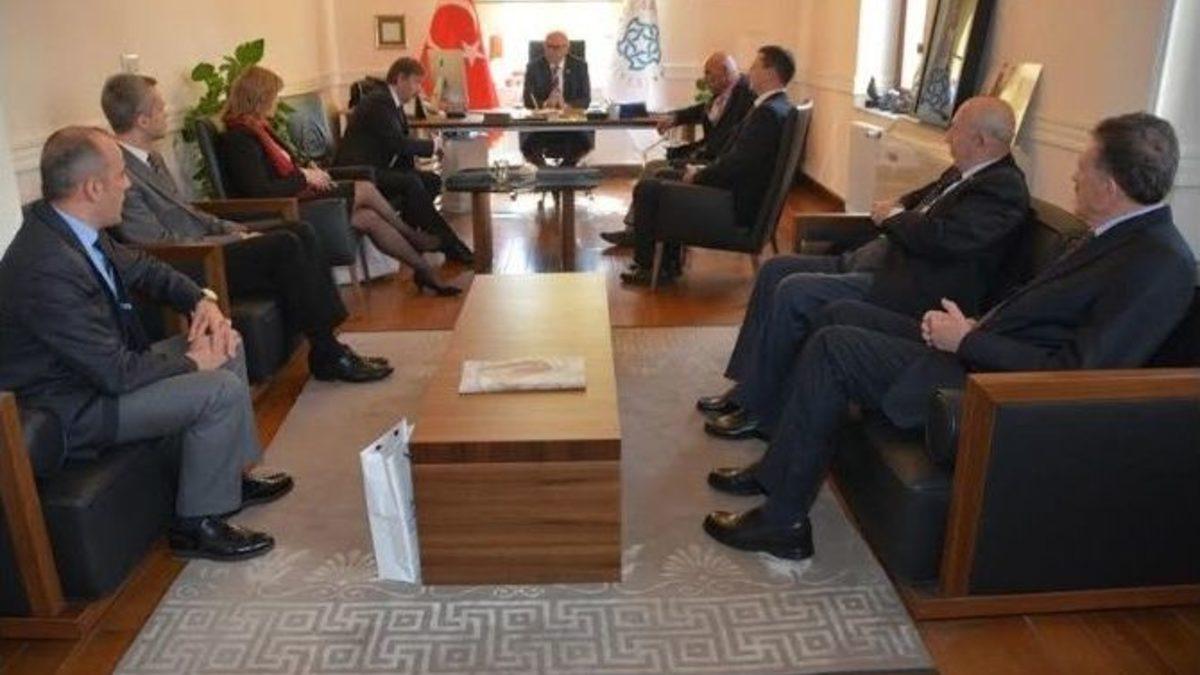 Macaristan’da bulunan kardeş şehir Sarospatak’tan Tekirdağ’a gelen Eszterhazi Karoly Üniversitesi Rektörü Prof. Dr. Liptai Kalman ve beraberindeki heyet Süleymanpaşa Belediye Başkanı Ekrem Eşkinat’ı makamında ziyaret etti.Bir süre sohbet eden heyet yaptıkları kültürel çalışmalar ile ilgili Ekrem Eşkinat’ı bilgilendirdi. Ziyaretten memnuniyet duyduğunu ifade eden Başkan Eşkinat, Eszterhazi Karoly Üniversitesi Rektörü Prof. Dr. Liptai Kalman ve beraberindeki heyete çalışmalarında başarılar diledi.
