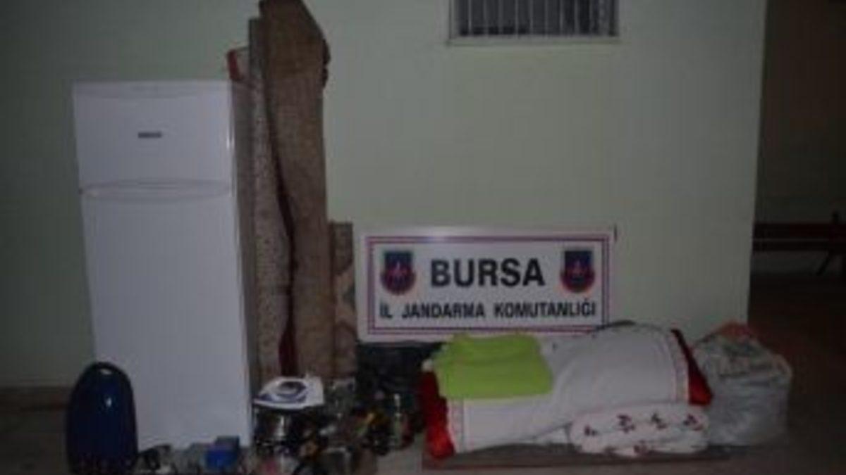 Bursa'nın İnegöl ilçesinde, Oylat yolu üzerinde bulunan bir dubleks ev iğneden ipliğe kadar soyuldu. Özel otomobille günlerce gelip giderek evdeki bütün eşyaları çalan biri kadın 3 zanlı, jandarma ekiplerinin sıkı takibi neticesinde yakalandı.Edinilen bilgiye göre, İnegöl Oylat yolu üzerinde bulunan Sümmani Özdemir’e ait ev hırsızların uğrak yeri oldu. Daha önce üç kez soyulan ev, dördüncü soygunda tamamen boşaltıldı. 2 Aralık’ta meydana gelen hırsızlık olayında, Kartal marka özel otomobille söz konusu eve gelen hırsızlar, evde kimsenin olmadığı sırada 3-4 tur yaparak beyaz eşyadan halıya, matkaptan iğne ve ipliğe kadar her şeyi çaldı. Mobilyalara da göz diken hırsızlar, ertesi gece saatlerinde yine gelerek, mobilyaları da parça parça özel otomobilin arkasına doldurarak götürdü.Hırsızları yakalamak için harekete geçen İnegöl Jandarma Komutanlığı ekipleri, yol boyundaki güvenlik kameralarını takibe aldı. Olayın gerçekleştiği gece Kartal marka özel otomobilin Oylat yoluna 4-5 kez gidip geldiğini tespit edilen ekipler, plakası belirlenen otomobilden yola çıkarak hırsızlık zanlılarına ulaştı. Hırsızlık zanlılarının iki gün önce Bursa’da ev kiralıklarını öğrenen jandarma ekipleri, savcılık izni ile söz konusu eve baskın yaptı. Evde bulunan eşyaların Sümmani Özdemir’e ait dubleks evden çalınan eşyalar olduğu tespit edilirken, olayla ilgili üç kişi gözaltına alındı.Gözaltına alınan İ.Y. (45), U.G. (40) ve F.A. (29) isimli kadın, sevk edildikleri mahkemece tutuklandı. Şahıslardan İ.Y.’nin 18 Aralık 2012 tarihinde İnegöl’de koyun hırsızlığı suçundan tutuklandığı ve 19 Kasım 2013 tarihinde tahliye olduğu öğrenildi.Çalıntı eşyalar Sümmani Özdemir’e teslim edildi.