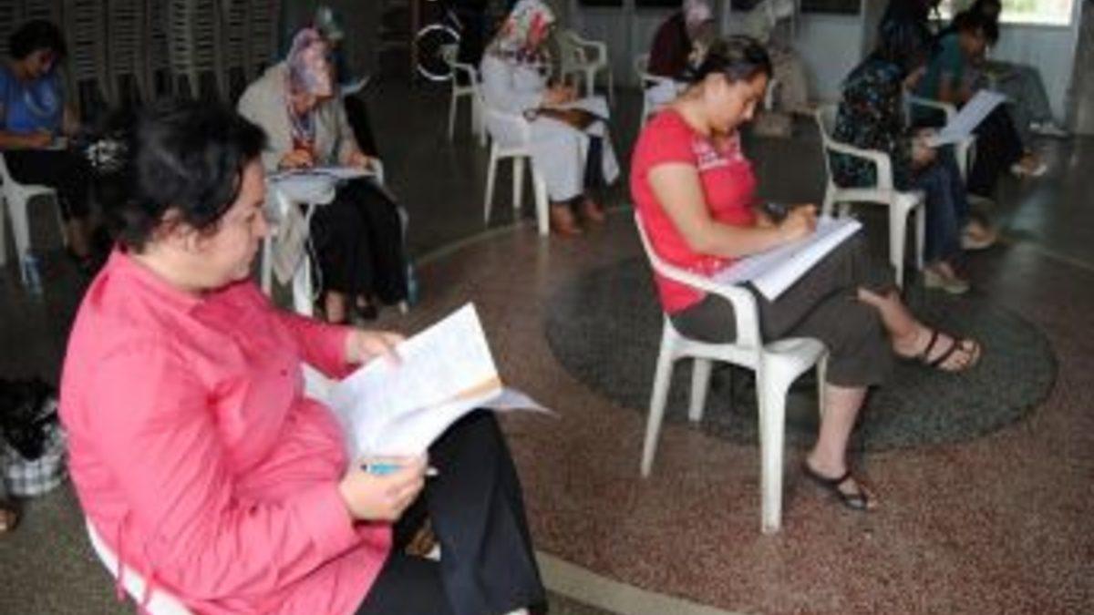 Fethiye Halk Eğitim Merkezi Salonu'nda yapılan sınavda kursiyerler, 4 ay boyunca öğrendikleri çeşitli konularla ilgili soruları cevaplandırırken terlediler. Kursiyerlere evde çocuk bakımı ile ilgili çeşitli uygulamalı bilgilerin de verildiği belirtildi.