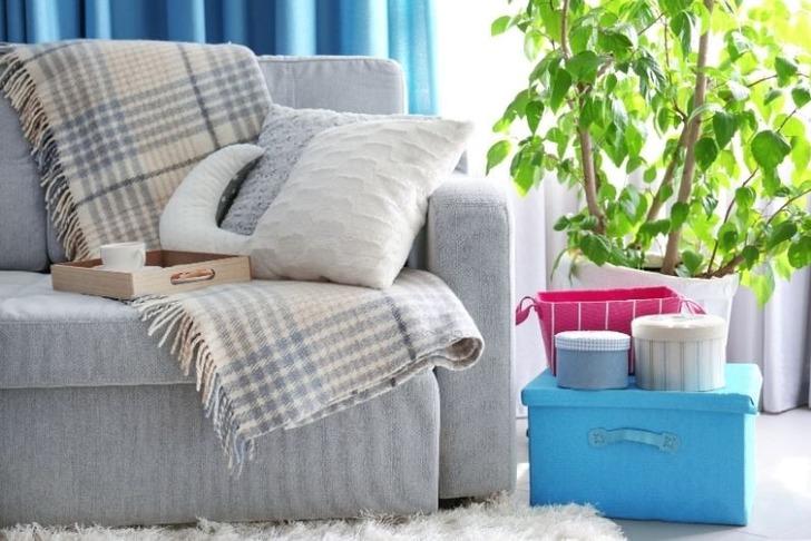 Televizyonun karşısındaki geniş kanepe.