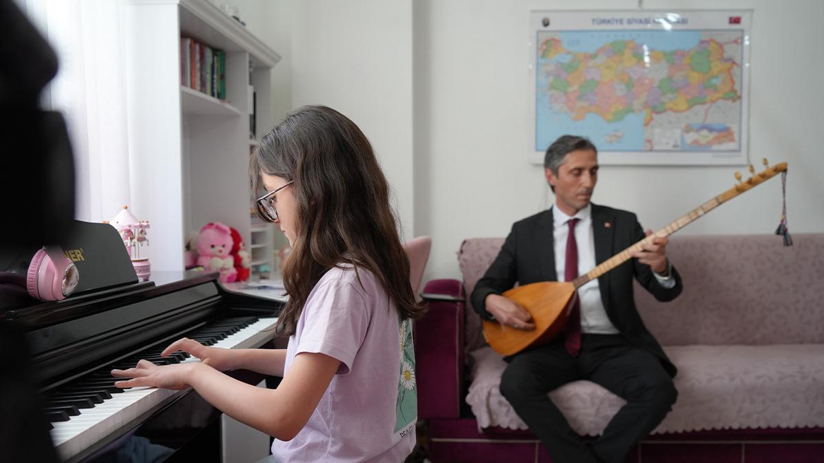 Bayburt'ta kalp rahatsızlığı nedeniyle evde öğrenim gören 10 yaşındaki Nursima Topsakal'a İl Milli Eğitim Müdürü Ömer Faruk Kahraman unutamayacağı bir sürpriz yaptı. Nursima'dan gelen isteği geri çevirmeyen Kahraman, evde ziyaretine geldiği minik Nursima'nın piyano resitaline bağlama çalarak eşlik etti.
