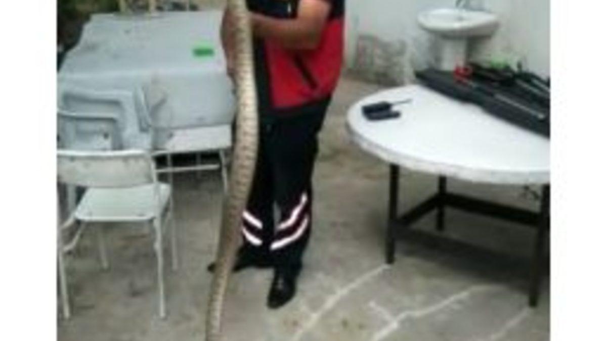 Malatya’da bir eve giren yaklaşık 2 metre uzunluğundaki yılan itfaiye ekipleri tarafından yakalandı.Özalper Mahallesi’nde bir evin bahçe kısmındaki barakaya giren yılanı gören ev sakinleri itfaiyeden yardım istedi. Bunun üzerine Büyükşehir Belediyesi İtfaiye Daire Başkanlığı’na bağlı ekipler eve gelerek çalışma yaptı. Kısa sürede sonra itfaiye ekipleri yaklaşık 2 metre uzunluğundaki yılanı yakaladı. Malatya’da şehir merkezinde şu ana kadar ilk kez böylesine bir büyüklükte yılan yakalandığı belirtilirken ev sahipleri ise derin bir nefes aldı.Özel kutuya konulan yılan daha sonra itfaiye ekipleri tarafından Doğa Koruma ve Milli Parklar Bölge Müdürlüğü ekiplerine teslim edildi.