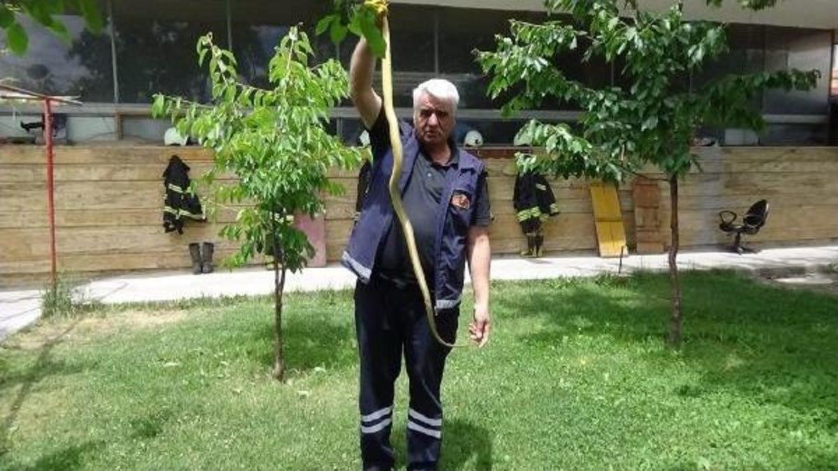 - ERZİNCAN’da öğle saatlerinde bir evin bahçesine giren 1,5 metre uzunluğundaki yılan, itfaiyecilerin uzun çabaları sonucu yakalandı.