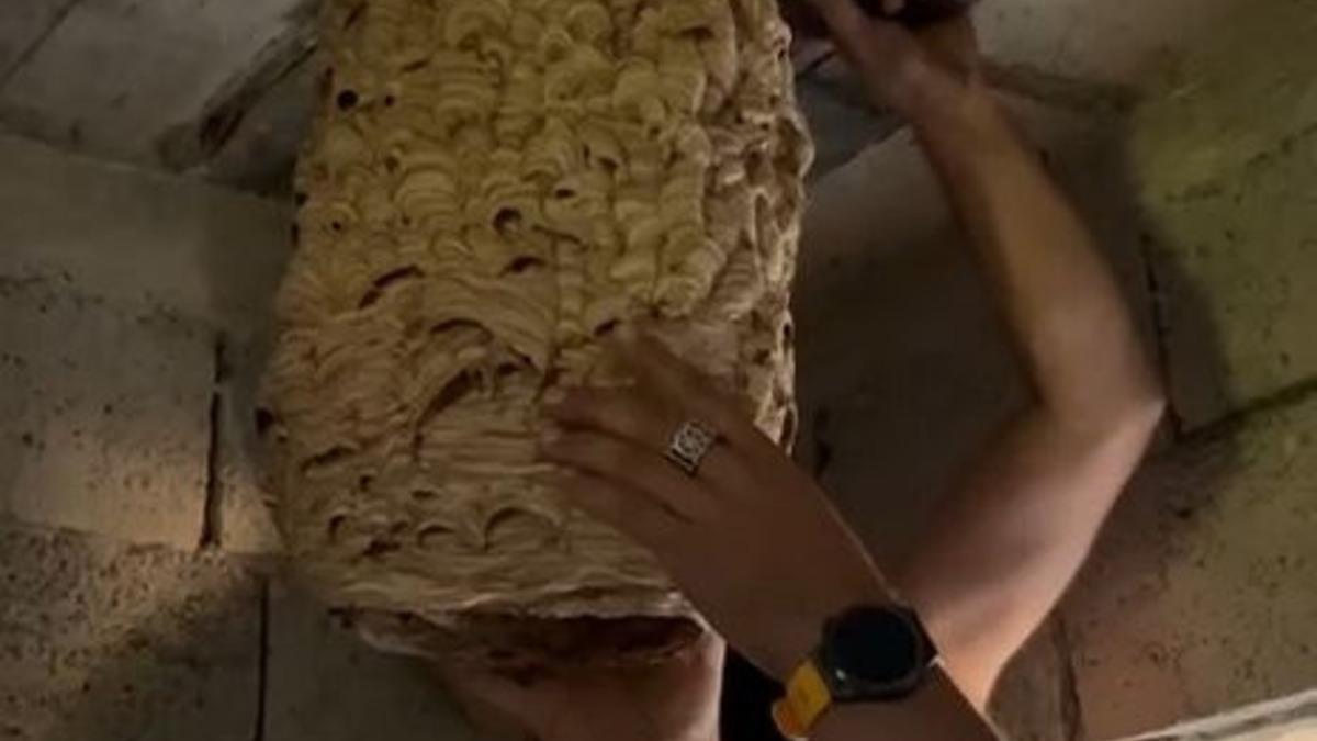 75 santimi aşan uzunluğu ile tavandan sarkan yuvayı testere ile kesen mahalle sakinleri bölgeden uzaklaştırdı.