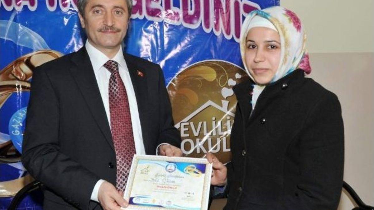 Evlilik Okulu Projesi kapsamında, eğitim seminerlerini tamamlayan kursiyerlere sertifikalarını, Şahinbey Belediye Başkanı Mehmet Tahmazoğlu verdi.