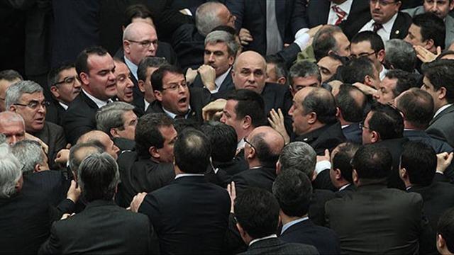 TBMM'de DEM ve AK Partili vekiller arasında kavga çıktı. Eski bakan ve AK Parti Trabzon Milletvekili Adil Karaismailoğlu, DEM Parti Mersin Milletvekili Ali Bozan’a yumruk attı.