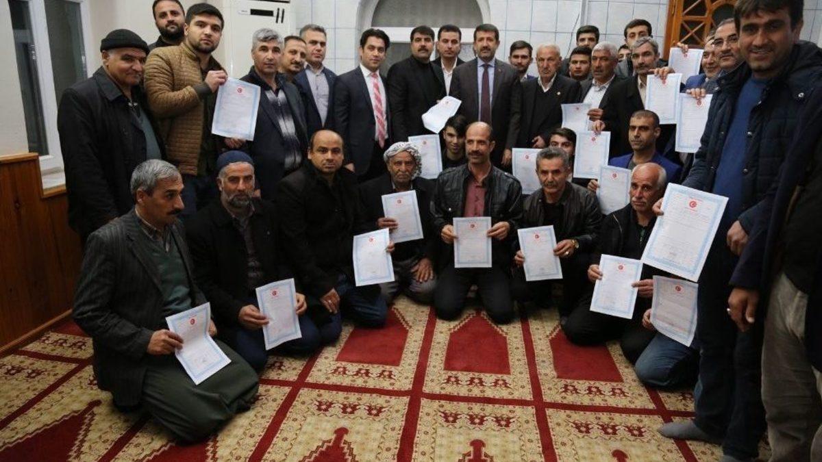 Şanlıurfa’nın Eyyübiye ilçesinde 140 aileye tapu dağıtıldı.Eyyübiye Belediye Başkanı Mehmet Ekinci, Akşemsettin Mahallesindeki 140 aileye tapu dağıttı. Tapu dağıtımına Eyyübiye Belediye Başkanı Mehmet Ekinci’nin yanı sıra belediye başkan yardımcıları, Akşemsettin Mahalle Muhtarı Ahmet Eskiler ile vatandaşlar katıldı. Mahalle sakinlerine kendisi tapularını dağıtan Başkan Ekinci, bu sorunun kökten çözümü için gece gündüz çalıştıklarını söyledi. Tapularını alan ve mutlulukları gözlerinden okunan vatandaşlar da Eyyübiye Belediye Başkanı Mehmet Ekinci’ye teşekkür etti. İlçedeki tapu sorununu kökten çözüme kavuşturmak için çaba sarf ettiklerini belirten Ekinci,” İnşallah bu sorunun kökten çözümü kısa sürede gerçekleşecek” dedi.Eyyübiye Belediye Başkanı Mehmet Ekinci tapu dağıtımı sonrası yaptığı açıklamada, “İlçemizde çok ciddi bir sorun olan tapu sorunuyla ilgili belediye olarak çalışmalarımızı sürdürüyoruz. Geçtiğimiz yıl yine Akşemsettin Mahallemizde tapu dağıtımı yapmıştık. Muhtarımız ve sorunun çözümüne katkı sunan teknik ekipten arkadaşlarımızla beraber 140 vatandaşımızın tapusunu veriyoruz. Şahıs arazilerinin olduğu alanlarda belediyenin yaptığı çalışmalar sonucu bu tapuları vatandaşlarımıza veriyoruz. Vatandaşlar kendi aralarında mutabık olduklarında biz de belediye olarak her türlü kolaylığı sağlıyoruz. Hazine arazileri üzerinde olan yerlerle ilgili de bizim hazırladığımız taslak Çevre ve Şehircilik Bakanlığının web sitesinde yayınlandı. İnşallah hazine arazileri üstündeki yerlerle ilgili mevcut sorun da kısa zamanda tümüyle bitecek. Bunun yasal sürecini bekliyoruz. Olay artık Bakanlar Kurulunun gündeminde. İnşallah bugün dağıttığımız tapular hayırlı uğurlu olur“ şeklinde konuştu.