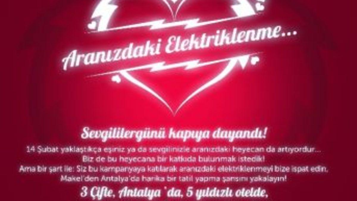 Sevgililer Günü'nün yaklaştığı şu günlerde sosyal paylaşım sitesinde sevgililer arasındaki elektriklenmeyi ölçmek için başlatılan "aranızdaki elektriklenme" testi ilgi çekti.Sevgililer Günü’nde sosyal paylaşım sitesi facebookta ilginç bir uygulama başlatıldı. Bu uygulamada “Aranızdaki Elektriklenme” konulu mini bir test başlatıldı. Bu testle çiftler arasındaki elektriklenme ölçülüyor. 10 soruluk mini teste en hızlı ve en tutarlı yanıtı vermeyi başaran 3 çift Antalya’da beş yıldızlı bir otelde tatil yapmayı hak kazanacak.Facebook sayfasına girerek mini testi yanıtlamaya başlayan yarışmacı vakit kaybetmeden aynı sayfayı sevgilisine göndermesi gerekiyor. Birbiri ile uyumlu "Elektrik" ölçer yanıtları mümkün olan kısa sürede vermeyi başaran çiftler Antalya’da 2 gün geçirme şansına sahip olacaklar. Talihli çiftler kazandıkları tatil hediyesini 15 Mart ile 15 Nisan 2014 tarihleri arasında diledikleri bir tarihte kullanabilecekler. Uygulama facebook sayfasında 14 Şubat’a kadar devam edecek.