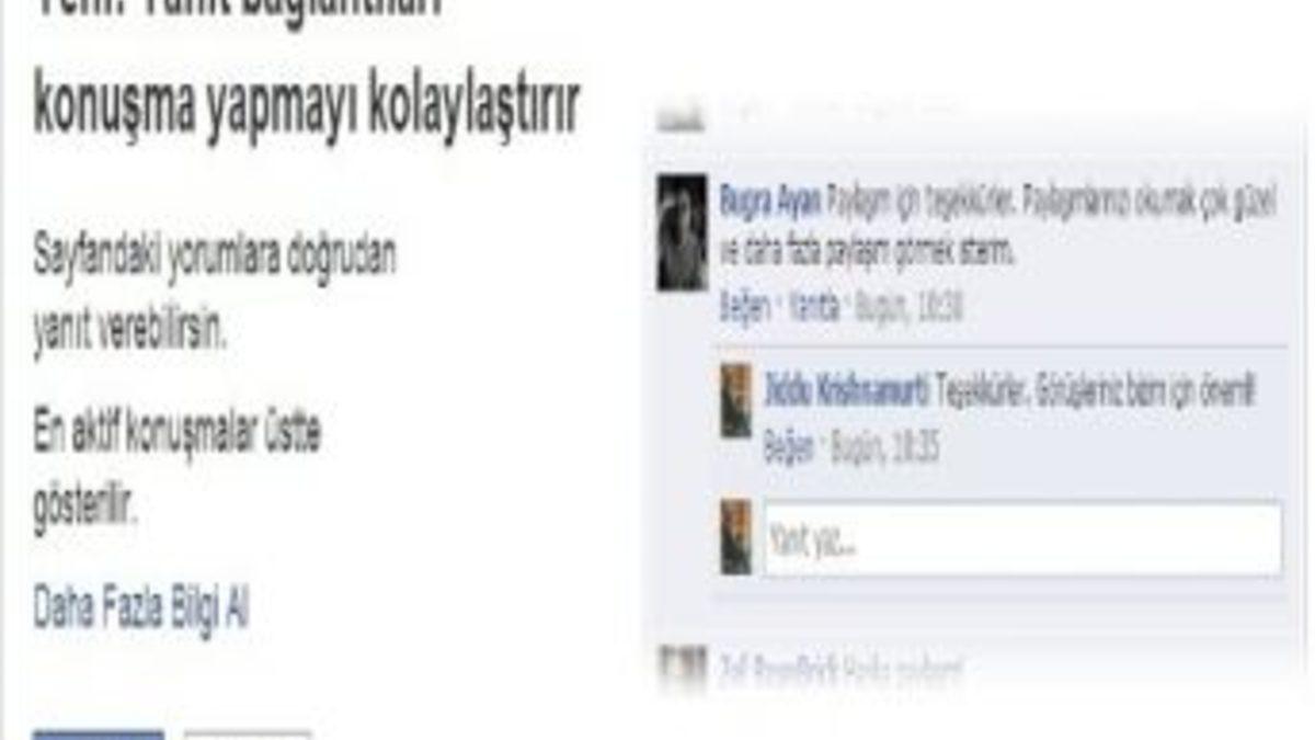 Sosyal medya devi Facebook yapılan diyalog ve yorumlar için yanıtla seçeneğini devreye soktu. Sayfa editörleri önceki kullanımda yorumlara etiket kullanarak cevap verebiliyorlardı. Fakat yeni uygulama ile kullanıcının yorumunun altına 'Yanıtla' seçeneği ile yorum yapılabiliyor.