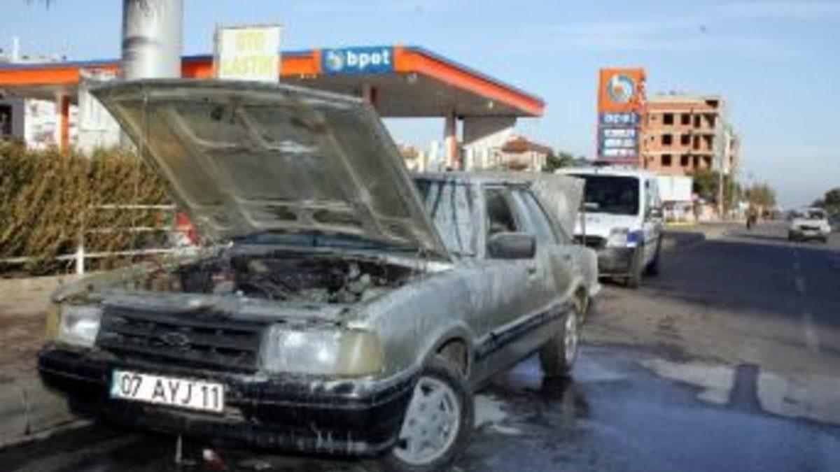 Antalya'da otomobile yakıt alınırken çıkan yangın sonucu, sürücü ve eşi yanmaktan son anda kurtuldu. Yangın anı ve söndürme çalışmaları güvenlik kameralarına yansıdı.Olay, akşam saatlerinde Mehmet Atay Caddesi üzerinde bulunan akaryakıt istasyonunun önünde meydana geldi. Erdal Ş., 07 AYJ 11 plakalı otomobiline LPG yakıtı almak için istasyona geldi. Yakıt aldıktan sonra istasyon çıkışında aracın bir anda bagaj kısmından alev alması sonucu Erdal Ş. ve Fatma Ş. kendilerini araçtan dışarı attı. Petrol istasyonu çalışanları tarafından olay yerinde söndürülen araç kullanılamaz hale geldi. Yangında eli ve yüzünden yaralanan Erdal Ş. ve Fatma Ş., Akdeniz Üniversitesi Hastanesi'nde tedavi altına alındı.SİGARA İÇTİ İDDİASIOlayın meydana geldiği istasyonun işletmecisi Yahya Güleç ise, yangının sürücünün sigara içmek istemesinden dolayı çıktığını öne sürerek, "Aracın arka ve önünden ateş çıktığını gördük. Hemen aşağı indik. Yangın tüpleriyle aracı söndürdük. Aracın içinde bulunan kadının yüzü eli yanmıştı. Pompacının uyarmasına rağmen aracı kullanan kişi sigara yakmak istemiş. Yangının bu nedenle çıktığını düşünüyoruz" dedi.GÜVENLİK KAMERASI TARAFINDAN KAYDEDİLDİİstasyonun güvenlik kameralarına yansıyan görüntülerde, yakıt almak için LPG pompasının yanında duran araç, yakıt aldıktan sonra ilerliyor. Görüntüde istasyon çıkışına yaklaşan aracın sağ arka tarafından alev çıkarken, aynı anda aracın içinde de alevlerin yükseldiği görülüyor. Yangında el ve yüzleri yanan çiftin araç içinden çıkmaları ve istasyon görevlilerinin yangına müdahale etmesi de görüntülerde yer alıyor.