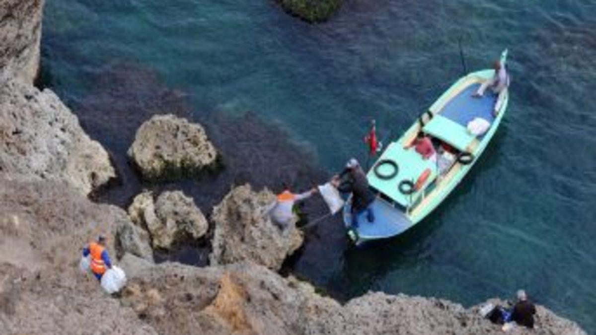 İplerle yaklaşık 30 metrelik falezlerden aşağı inen TODOSK üyeleri, topladıkları çöpleri denizden tekneyle çalışmalara katılan işçilere verdi. Temizlik çalışmaları, turistlerin ve meraklı bakışları arasında yapıldı.