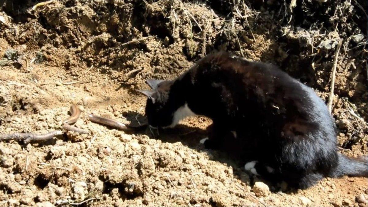 Ordu’da yavru kedi ilk defa gördüğü yılandan korktu.Kabadüz ilçesinde Süleyman Bıyık’a ait Boncuk isimli yavru kedi ilk kez gördüğü yılanı yakalayamadı. Yavru kedi çekinerek patileriyle yılana vurmaya çalışsa da, kediye aldırış etmeyen yılan otların arasında kayboldu.Boncuk isimli kedinin sahibi Süleyman Bıyık, yavru kedisinin ilk defa yılan gördüğü için korktuğunu söyledi.
