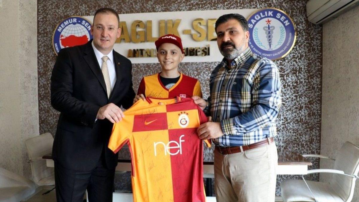 Galatasaray Teknik Direktörü Fatih Terim, bir proje kapsamında hastane içerisine konulan bir dilek ağacına ‘Fatih Terim imzalı bir forma istiyorum’ notunu bırakan lösemili gencin dileğini, kendisiyle tüm takım oyuncularının imzasının yer aldığı formayı göndererek gerçekleştirdi.Antalya’da yaklaşık 2 aydır Akdeniz Üniversitesi Hastanesi Pediyatrik Onkoloji bölümünde tedavi gören lösemi hastası 13 yaşındaki Yiğit Yardımcı, Sağlık Sen Antalya Şubesi tarafından başlatılan ‘Bir dileğim var’ projesi kapsamında hastane içerisine konulan dilek ağacına, ‘Fatih Terim imzalı forma istiyorum’ notunu bıraktı. Sağlık-Sen yetkilileri Galatasaray aşığı gencin isteğini yerine getirebilmek için sarı kırmızılı kulübün kongre üyelerinden Ferit Özer’e bu isteği iletti. Çok geçmeden ulaşan bu talep de Fatih Terim tarafından yerine getirildi. Terim, sadece kendi imzası istenilen formayı, tüm takıma imzalatıp genç Yiğit’e göndererek hayalini gerçekleştirdi.Dileği yerine geldiDileğinin yerine geldiğini öğrenen Yiğit, doktor babası İsmail Yardımcı ile birlikte Sağlık Sen Antalya Şubesine gelerek özlemle beklediği formasına kavuştu. Üzerinde Fatih Terim’in yanı sıra tüm futbolcuların imzasının yer aldığı formayı görünce çok sevinen Yiğit, yine Terim tarafından gönderilen imzasız başka bir forma sahibi olmanın da ayrı mutluluğunu yaşadı. Her iki formayı da üst üste giyen Yiğit, yetkililere teşekkür etti."Tek imza istedik, Fatih hoca tüm takıma imzalatmış"Formayı görür görmez giyen Yiğit, çok mutlu olduğunu ifade etti. Gencin dileğini Fatih Terim’e ulaştıran kongre üyesi Ferit Özer, "Biz sadece hocamızın imzalaması için talepte bulunmuştuk, Fatih hoca tüm takımın hepsine imzalatmış. Camia olarak kardeşimizin en kısa sürede sağlığına kavuşmasını diliyoruz" diye konuştu.Sağlık Sen Antalya Şube Başkanı Sinan Kuluöztürk ise başlattıkları projenin amacına ulaştığını belirterek, formayı da Yiğit’in güle güle kullanmasını temenni etti.