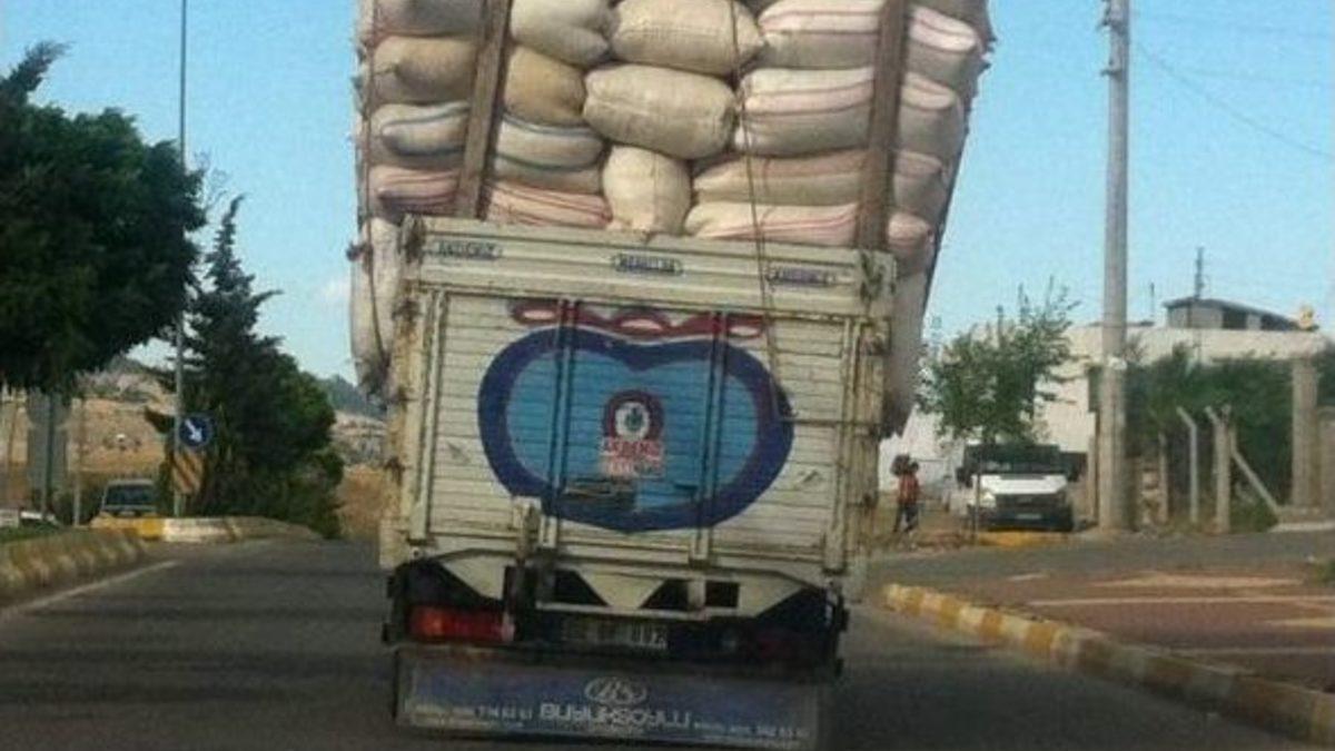 Adıyaman’da Sakarya Caddesi'nden Malatya istikametine gitmekte olan kamyon, yüklenen aşırı yük nedeniyle trafikte adeta faciaya davetiye çıkardı.Edinilen bilgiye göre, Sakarya Caddesi'nden Malatya istikametine gitmekte olan sürücüsü öğrenilemeyen 02 DF 882 plakalı kamyonun, aşırı şekilde yük yüklenip yola çıkması dikkatlerden kaçmadı. Virajlı yollarda ve yolun eğimli noktalarında adeta devrilme riski taşıyan kamyonun sürücüsü, tehlikeye aldırış etmeden Malatya’ya doğru hız kesmeden devam etti. Bir yandan hızla yoluna devam eden, bir yandan da tehlikeye aldırış etmeyen kamyon sürücüsü, trafikte bulunan diğer araç sürücüleri tarafından tepkilere neden oldu.