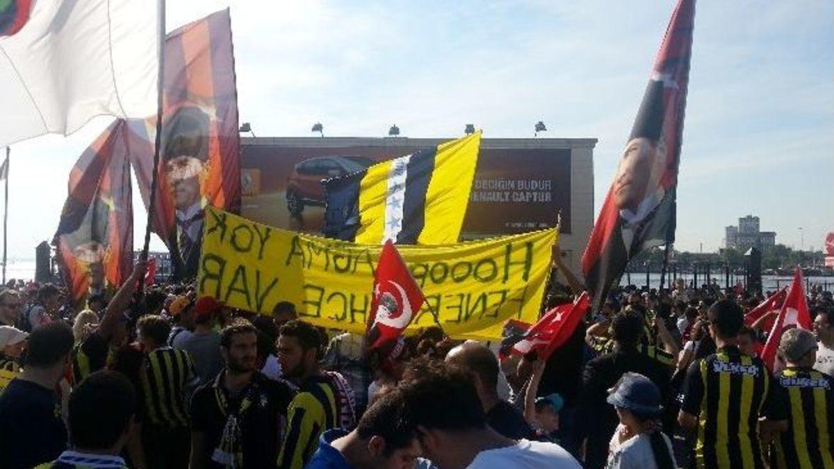Fenerbahçeli taraftarlar, Taksim Gezi Parkı eylemine destek için Avrupa yakasına geçti. Burada Beşiktaşlı taraftarlarla buluşan taraftarlar, Taksim’e doğru yürüyüşe geçti.