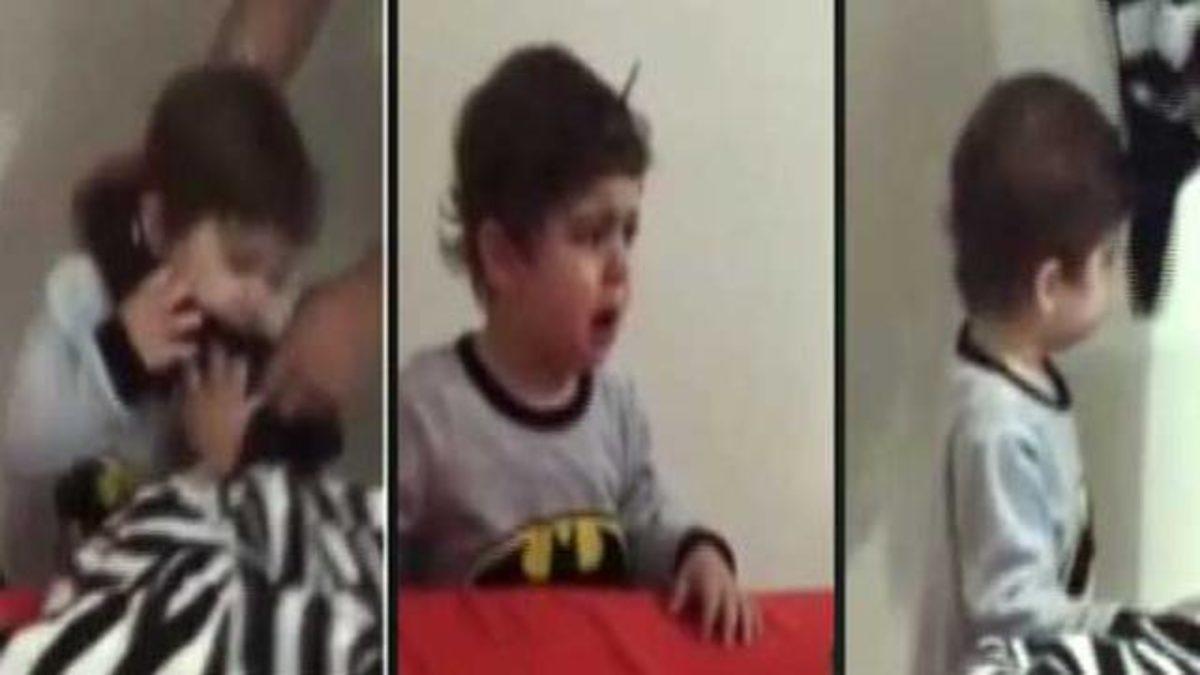 Görüntülerde koyu bir Beşiktaş taraftarı olduğu anlaşılan küçük çocuk babasının zorla Fenerbahçe formasını giydirmesine bakın nasıl tepki veriyor.