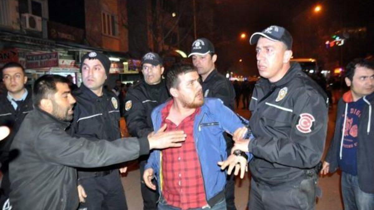 Mahir ALAN/ADIYAMAN, İstanbul'da Fenerbahçe'nin, ezeli rakibi Galatasaray'ı 1-0 mağlup etmesinin ardından iki takımın taraftarları, Sümer Meydanı'nda karşı karşıya geldi. Taraftar grupları arasında galibiyet ve yenilgi nedeniyle gerginlik çıktı. Yaşanan arbedeye meydanda bulunan polisler yetersiz kalınca çevik kuvvet ekipleri çağrıldı. Çevik kuvvet ekipleri, taraftar gruplarına biber gazıyla müdahale etti. Polisin müdahalesinin ardından kalabalık, ara sokaklara dağıldı.