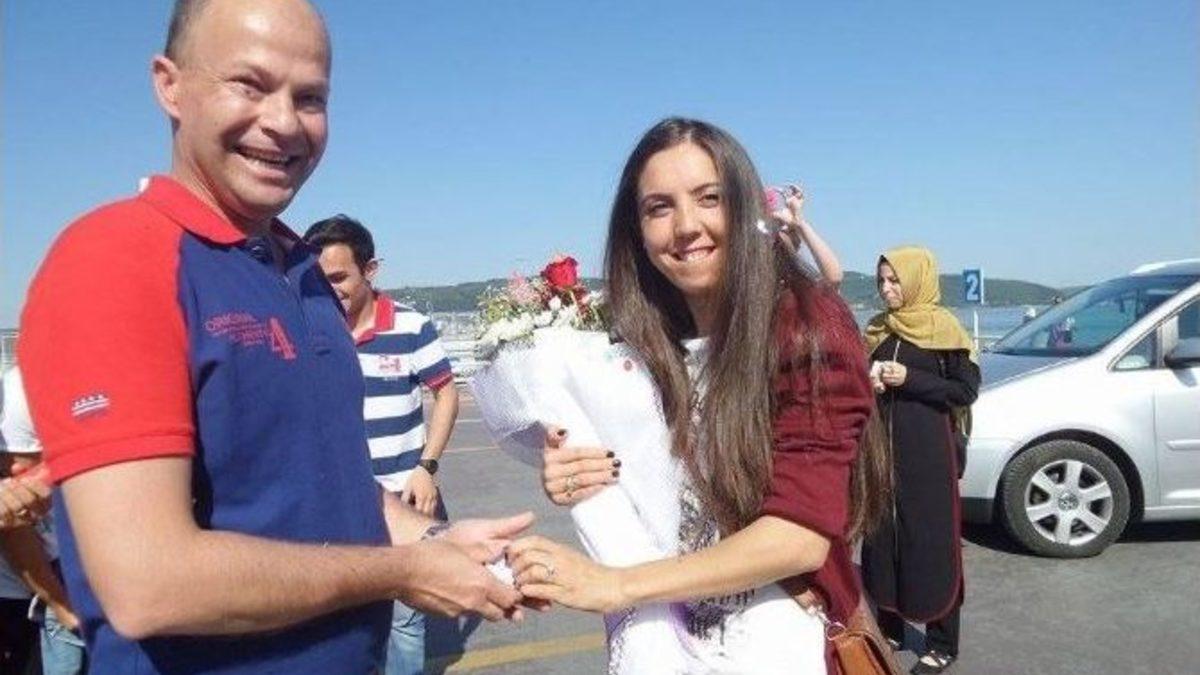 Çanakkale Feribot İskelesi’nde kız arkadaşı için pankart açan kişi, sürpriz bir evlenme teklifinde bulundu.1 Eylül 2015 tarihinde düğünleri yapılacak olan Süleyman Solmaz ile Ayşe Özdemir çifti, dün Gökçeada’dan Çanakkale Merkez’e geldi. Erkek arkadaşıyla gezmeye geldiğini düşünen Ayşe Özdemir, feribottan inerken sürprizle karşılaştı. Süleyman Solmaz, 1 yıldır birlikte olduğu sevgilisi Ayşe Özdemir için önceden hazırlattığı ’Bazen bir hikaye, tutuşmuş iki eldir. Bu hikayenin baş rolünde benimle olmak ister misin dünyam? Benimle evlenir misin Ayşem" yazılı pankartla evlenme teklif etti. Pankartı görünce şaşkına dönen Özdemir’in önünde bir anda diz çökerek, yanında getirdiği yüzüğü çıkaran Solmaz teklifine "Evet" cevabını alınca, genç çift yüzüklerini taktı. Çiftin yakın arkadaşları da kutlama konfetilerini patlattı. Arkadaşları ve çevredeki vatandaşlar çifti tebrik ederek bir ömür mutluluklar diledi.
