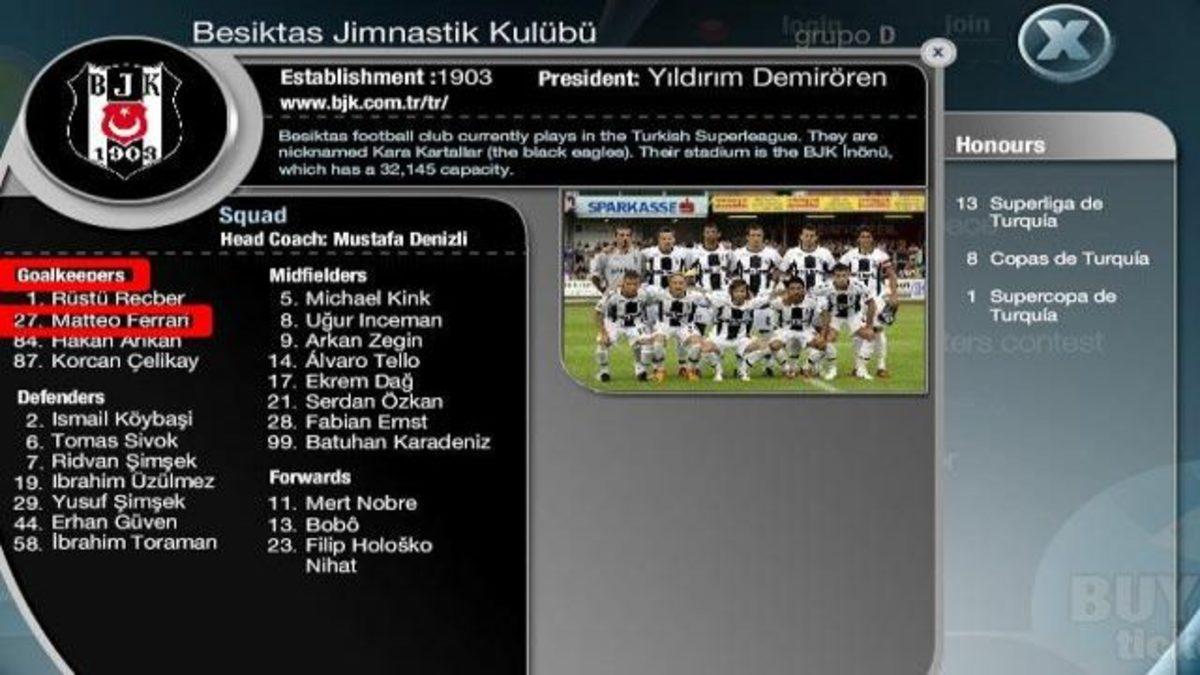 Turnuvanın resmi sitesinde Beşiktaş ile ilgili bir başka amatörlük daha gözlerden kaçmıyor. Beşiktaş takımının ana sayfasına girildiğinde, kaleciler kısmında yeni transfer Matteo Ferrari'nin varlığı dikkat çekiyor. Hatalar bununla da sınırlı değil!