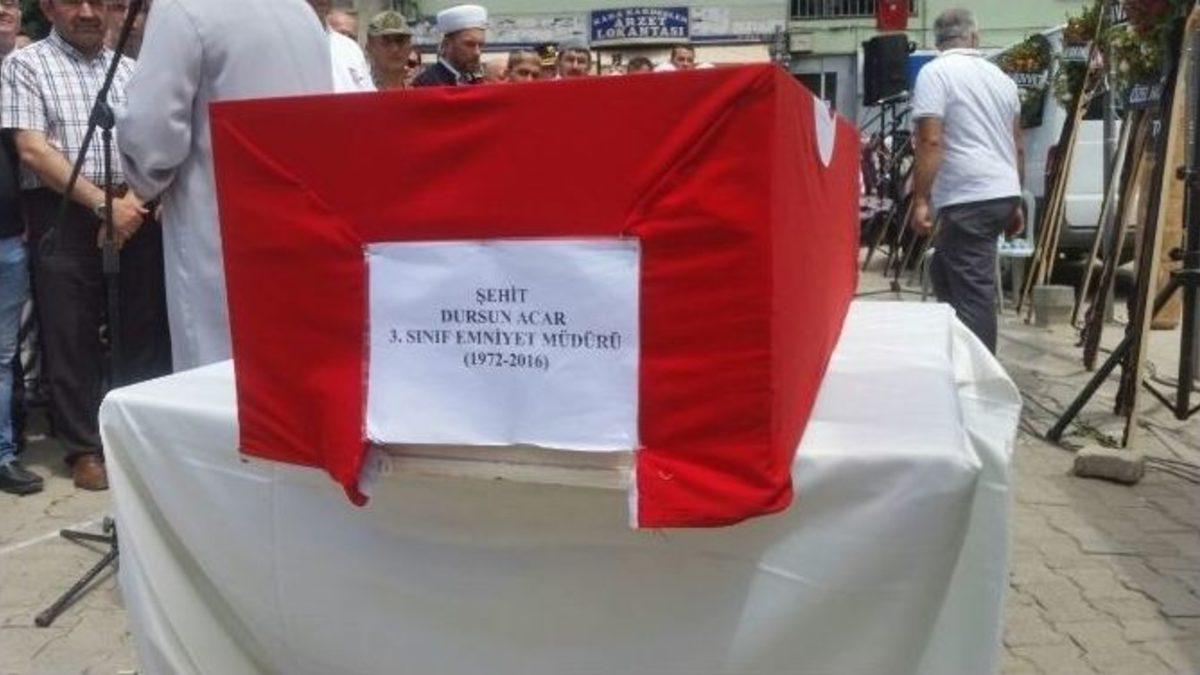 Fetullahçı Terör Örgütü’nün (FETÖ) darbe girişimi sırasında Gölbaşı Özel Harekat Daire Başkanlığı’na yapılan saldırıda şehit olan Emniyet Müdürü Dursun Acar memleketi Artvin’in Yusufeli ilçesinde son yolculuğuna uğurlandı.Fetullahçı Terör Örgütü’nün (FETÖ) darbe girişimi sırasında Gölbaşı Özel Harekat Daire Başkanlığı’na yapılan saldırıda şehit olan 44 yaşındaki evli ve iki çocuk babası Emniyet Müdürü Dursun Acar için Yusufeli eski terminal alanında öğle namazı sonrasında cenaze namazı kılındı. Cenaze namazına Artvin Valisi Muhterem İnce, Emniyet Müdürü Ahmet Şengün, AK Parti Milletvekili İsrafil Kışla, eski bakanlardan Faruk Özak, şehidin ailesi, silah arkadaşları ile çok sayıda vatandaş katıldı. Cenaze namazı için şehidin cenazesi cenaze aracından alınarak omuzlarda tekbirler eşliğinde namazın kılınacağı alana getirildi. Acar’ın cenazesi burada kılınan cenaze namazının ardından Küplüce köyünde toprağa verildi.
