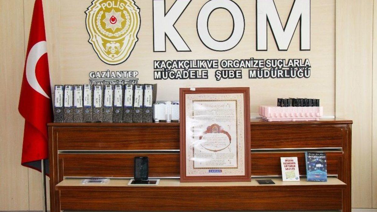 Gaziantep’te FETÖ/PDY terör örgütüne yönelik operasyonda, örgütün üst düzey mensuplarına verilen ve nişan olarak kullanılan ’Kıtmir’ duasının bulunduğu madalyon ele geçirildi.Gaziantep Emniyet müdürlüğünden yapılan açıklamada, FETÖ/PDY’ye finans sağlayan şahıs ve bu şahıslara ait 3 ayrı şirkete operasyon yapıldıüı bildirildi. Kaçakçılık ve Organize Suçlarla Mücadele Şube Müdürlüğü ekiplerince yapılan operasyonlarda ve şirket yetkililerinin adreslerinde gerçekleştirilen aramalarda E.K. isimli şirket yetkilisi gözaltına alındı.Şüpheli şahısların ikametlerinde ve iş yerlerinde yapılan aramalarda ise el yazısı ile Arapça harflerle gümüş üzerine yazılan ve kolye şekline getirilen, illerde FETÖ/PDY örgütü içerisinde üst düzeyde bulunan örgüt mensuplarına verilen ve örgüt mensupları tarafından örgütün nişanı olarak kullanılan bir adet ’Kıtmir’ duasının bulunduğu madalyon ele geçirildi. Ayrıca FETÖ/PDY örgüt lideri tarafından yazılan içerisinde iki adet şiir bulunan tablo, yasaklı yayınlardan Feza yayıncılığa ait "insanlığın iftihar tablosu" isimli bir adet kitap, yasaklı yayınlarından Nesil yayınlarına ait "İnsanı Uçuruma Götüren Sözler" isimli bir adet kitap, bir adet 5 dolar, bir adet 10 dolar, bir adet 100 dolar, bir adet 50 Euro, bir adet 50 pound ile şirketlere ait muhasebe kayıtlarının bulunduğu çok sayıda doküman ve dijital veriye el konuldu.Olayla ilgili soruşturma devam ediyor.