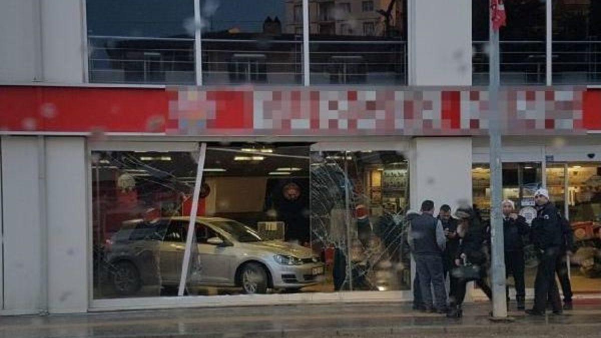 Park halindeki 11 AK 274 plakalı otomobilin sürücüsü Serkan Yıldırım, "Geri geri gelince bizim arabaya vurarak dükkanın içine girdi" dedi.