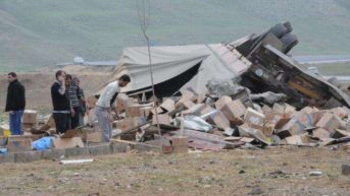 Şırnak’ın Cizre ilçesinde freni boşalan dinamit yüklü TIR kaza yaptı.Kaza, Cizre-Nusaybin karayolunun 5. kilometresinde Küçük Sanayi Sitesi mevkiinde meydana geldi. Mardin'in Midyat ilçesi istikametinden Şırnak'ın Silopi ilçesi istikametine seyreden Hüseyin Tonguç idaresindeki 73 SD 575 plakalı dinamit lokumu yüklü TIR, freninin boşalması sonucu kavşaktan geçen 33 BJF 16 plakalı TIR'a çarparak devrildi. Kazada ölen ya da yaralanan olmazken, TIR'daki dinamit lokumları da yola savruldu. Kazanın ardından olay yerine zırhlı araçlarla çok sayıda polis ve bomba imha uzmanları sevk edildi. Kaza nedeniyle yolun bir şeridi trafiğe kapatıldı. Araç ve çevreye savrulan dinamit lokumları etrafında güvenlik önlemlerinin alınmasından sonra bomba imha uzmanları inceleme yaptı. Yapılan incelemenin ardından bir tehlikenin olmadığının tespit edilmesi ile birlikte çevreye savrulan dinamit lokumları toplatıldı.Dinamit lokumu yüklü TIR'ın dinamitleri Midyat’tan yüklediği ve Habur Sınır Kapısı üzerinden Irak’a götüreceği belirtildi. Kaza nedeniyle yaklaşık 2 saat trafiğe kapalı kalan Cizre-Nusaybin karayolu, patlayıcıların ve kaza yapan aracın yoldan kaldırılması ile tekrar ulaşıma açıldı.Kazayla ilgili soruşturma devam ediyor.
