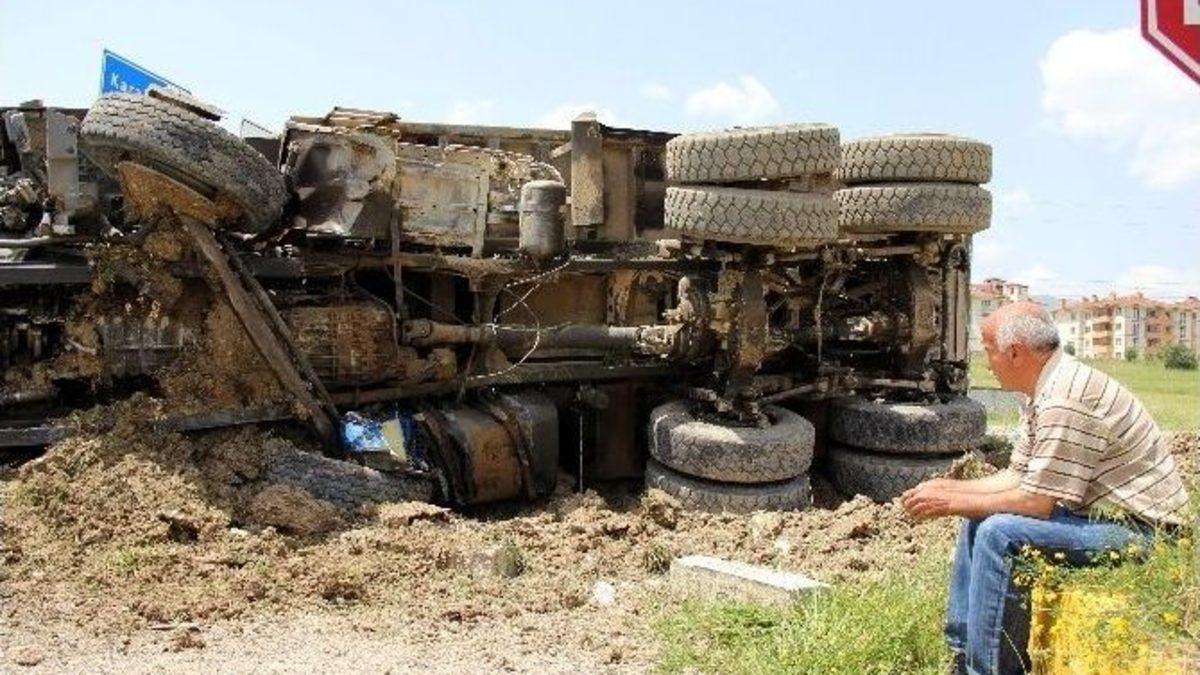 Karabük’te freni boşalan kum yüklü kamyon orta refüje çıkarak devrildi. Kaza sonrası panikle korkan kamyon sürücüsü ise olay yerini terk ettikten yarım saat sonra geri geldi.Edinilen bilgiye göre, Yazıköy’e parke taşları için kum taşıyan Sebahattin Gözetleyen (59) idaresindeki 34 EC 0688 plakalı kamyon, Bartın-Safranbolu yol kavşağında rampa aşağı indiği sırada bir anda freninin boşalması sonrası orta refüje çıkarak sürüklendi. Yaklaşık 20 metre sürüklenen kamyon kavşakta yan yatarak devrildi. Kaza sonrası çevredeki vatandaşların ihbarı üzerine olay yerine gelen polis ve 112 ekipleri olay yerinde kamyon şoförünü bulamadı. Uzun süre kamyon şoförünü arayan ekipler daha sonra olay yerene gelen bir firma yetkilisinden kamyon şoförüne ulaşması istendi. Bunun üzerine şoför, kazadan yarım saat sonra olay yerine gelerek polislere bilgi verdi.Kamyon şoförü Gözetleyen, kamyonun bir anda vites atarak frenlerin boşalarak orta refüje çarpıp devrildiğini, daha sonra korkup panikle kaçtığını söyledi.Kazayla ilgili polis ekipleri soruşturma başlattı.