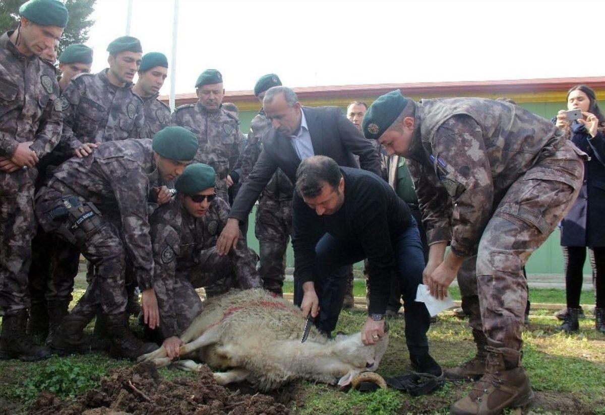 Kocaeli’den Afrin’e sevk edilen özel harekat polisleri dualar eşliğinde yolcu edildi. Uğurlama törenine katılan aileler gururlu olduklarını söylediler.Kocaeli Emniyeti Özel Harekat Müdürlüğü’nde görevli 22 kişilik Polis Özel Harekat Timi (PÖH), Türk Silahlı Kuvvetleri tarafından Afrin’de sürdürülen Zeytin Dalı Operasyonu’nda görevlendirilmek üzere törenle Afrin’e uğurlandı. Özel Harekat Şube Müdürlüğü’nde düzenlenen törene Kocaeli İl Emniyet Müdürü Necati Denizci, Afrin’e gidecek olan özel harekat polisinin aileleri katıldı. Törende polislerle tek tek selamlaşan İl Emniyet Müdürü Necati Denizci, yaptığı konuşmada özel harekat polislerine çıkacakları görevde başarılar diledi. Törende harekat polisleri için kurban kesildi. Daha sonra Afrin’de sürdürülen Zeytin Dalı Operasyonu’nda görevli olan tüm asker, polis ve korucu ekipleri için dua edildi.Törende konuşan Kocaeli İl Emniyet Müdürü Necati Denizci, “Ruhen ve bedenen hazırsınız, bundan şüphemiz yok arkadaşlar. İnşallah güle güle gider, sağ salim şekilde geri dönersiniz. Bunu umut ediyoruz. Yolunuz, bahtınız açık olsun. Allah emanet olun. Kurban keseceğiz. Allah kabul etsin. Sizleri seviyoruz, güveniyoruz” dedi.Eşi Murat Yılmaz’ı Afrin’e yolcu etmek için 4 aylık bebekleri Yusuf Selim’le birlikte Özel Harekat Polis Müdürlüğü’ne gelen Leyla Yılmaz, “İnşallah, Allah sağ salim gidip gelmelerini nasip eder. Üç ay 4 günlük bir bebeğim ve oğlum var. Hep beraber, eşim ve arkadaşlarından gurur duyuyoruz. Sağ salim dönmelerini nasip etsin Rabbim” diye konuştu.Özel Harekat Polis kardeşini Afrin’e yolcu etmeye gelen Aynur Şöhretli, gururlu olduğunu söyleyerek, “Kardeşimi uğurlanmaya geldim. Gururluyuz. Yoları açık olsun, Allah’a emanet olsunlar ve sağ salim sevdiklerine kavuşsun. Biz vedalara alışığız, sağ salim de döneceklerine eminiz” şeklinde konuştu.Tören sonunda aileleri ile vedalaşan özel harekat polisleri, dualar ve tekbirler eşliğinde uçakla Hatay’a gitmek için yola çıktılar. Hatay’a varacak olan 22 özel harekat polisi oradan da Afrin’e gitmek için yola çıkacaklar.