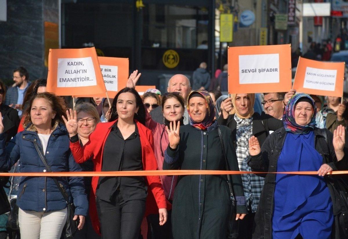 AK Parti Sinop İl Başkanlığı binasında toplanarak Sakarya Caddesi ve Atatürk Caddesi’nden yürüyüş yapan Kadın Kolları üyeleri, Uğur Mumcu Meydanı’nda basın açıklaması gerçekleştirildi. Törende kadınlar, her türlü şiddete karşı turuncu çizgi çektiler.