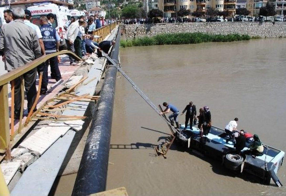 Amasya’da otomobille çarpıştıktan sonra köprüden Yeşilırmak’a uçan minibüsteki 14 kişi yaralandı.Minibüsün içinde azgın sularla mücadele eden sürücü ve 13 yolcu, olay yerine gelen dalgıç, itfaiye, AFAD, 112 ekipler ve polisler tarafından güçlükle çıkartıldı. Yaralılar sağlık ekiplerinin ilk müdahalesinin ardından ambulanslarla hastaneye götürüldü.Kaza, merkez Kurtboğan Köprüsü üzerinde meydana geldi. Edinilen bilgiye göre, Özkan Uzun’un kullandığı 05 M 0268 plakalı minibüs, köprü girişinde Tunahan Bektaş’ın kullandığı 28 DB 219 plakalı otomobille çarpışarak ırmağa uçtu. Suların içinde kalan yolcular, olay yerine gelen ekipler tarafından minibüsten çıkarıldıktan sonra uzatılan merdiven yardımıyla ırmaktan çıkartıldı. Durumu ağır olduğu için sağlık ekiplerinin müdahalesinin ardından sedyeye alınan Doğan Türkoğlu adlı vatandaş, bağlanan halatla yola çıkartıldı. Yaralılar 112 ambulanslarıyla hastaneye kaydırılırken, minibüs çekiciyle ırmaktan çıkartıldı. Amasya Belediyesi su altı kurtarma ekipleri de ırmak yatağını kontrol etti.Vali Vekili Ferhat Burakgazi ile Emniyet Müdürü Mehmet Artunay olay yerine gelerek inceleme yaptılar.